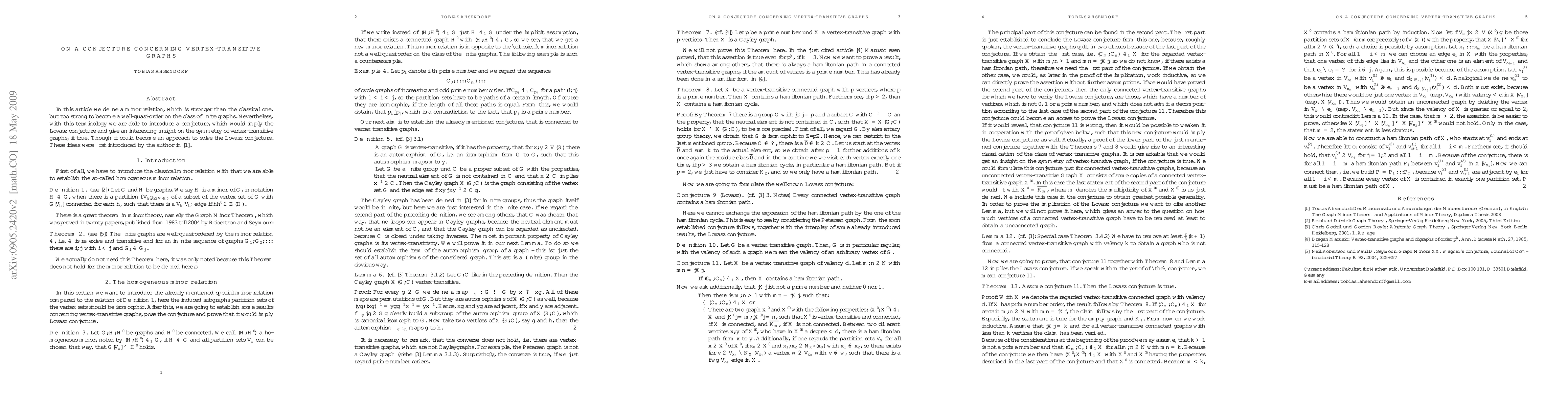 In this article we define a minor relation, which is stronger than the classical one, but too strong to become a well-quasi-order on the class of finite graphs. Nevertheless, with this terminology we are able to introduce a conjecture, which would imply the Lovasz conjecture and give an interesting insight on the symmetry of vertex-transitive graphs, if true. Though it could become an approach to solve the Lovasz conjecture. These ideas were first introduced by the author in his Diploma Thesis.