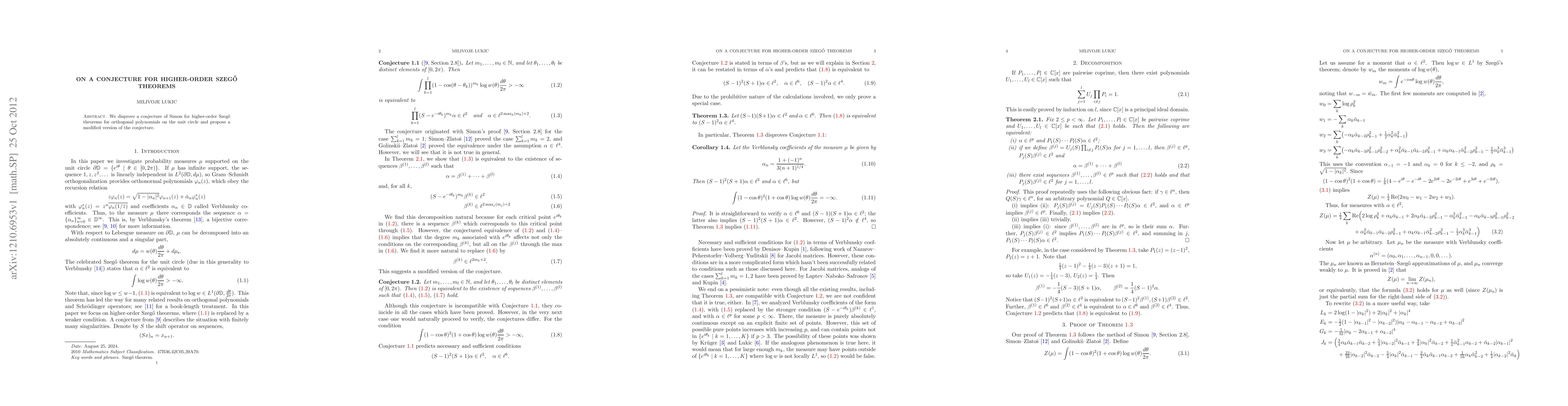 This paper refutes Simon's conjecture regarding higher-order Szego theorems for orthogonal polynomials on the unit circle and suggests an alternative, modified version of the conjecture.