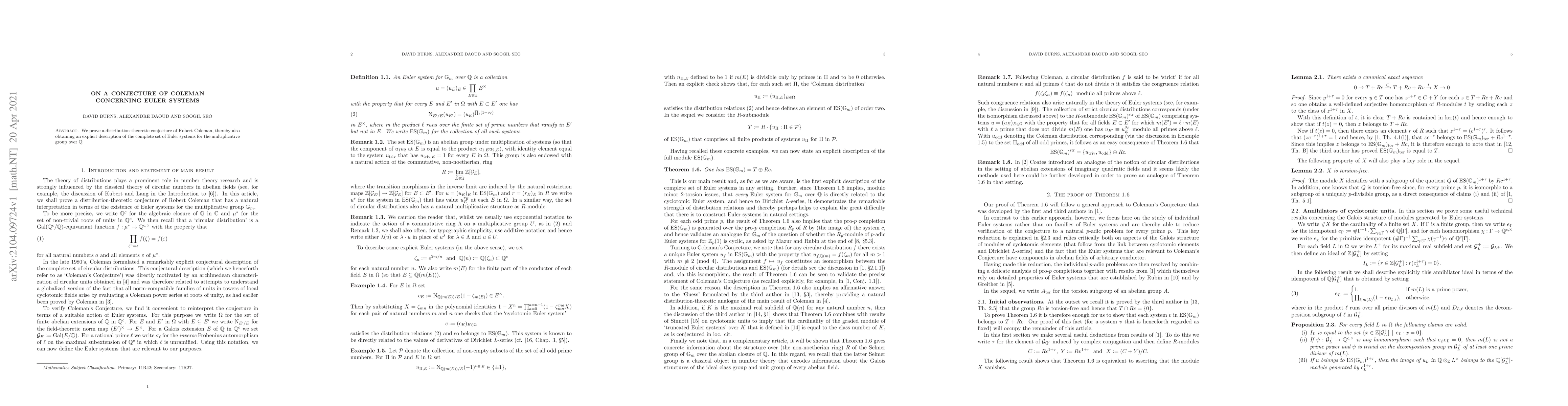 This paper proves Robert Coleman's conjecture regarding Euler systems, providing an explicit description of the complete set of Euler systems for the multiplicative group over rational numbers. The result advances the understanding of distribution-theoretic properties in number theory.