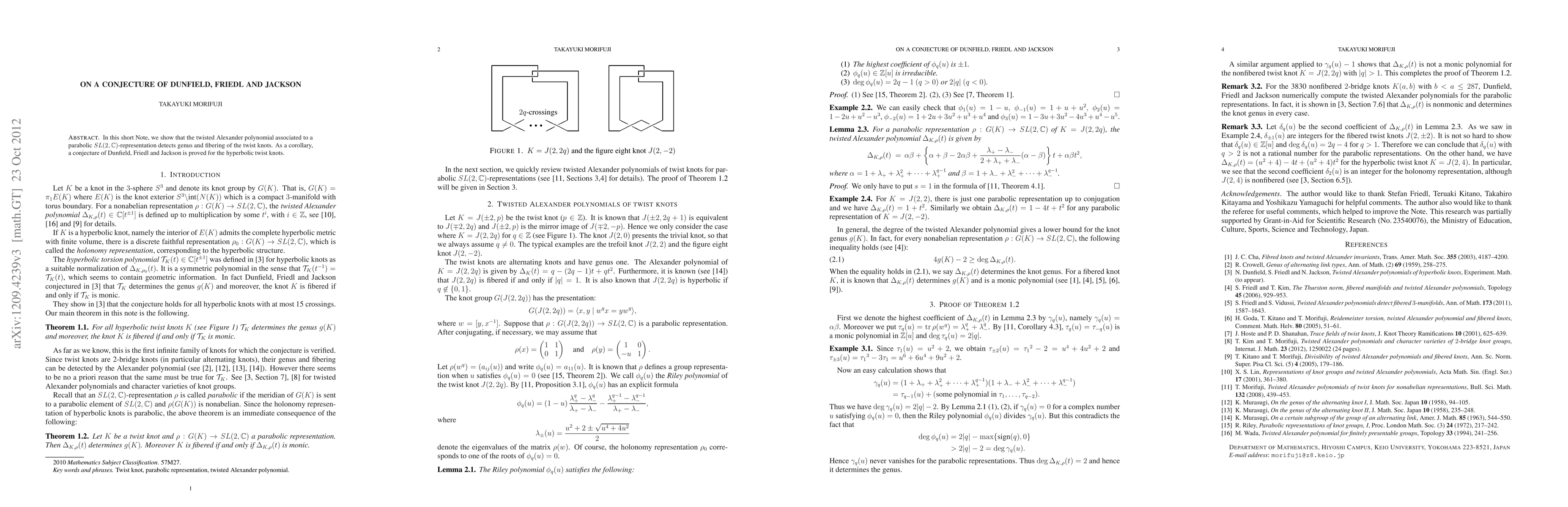 Researchers prove a conjecture about twisted knots using the twisted Alexander polynomial, which detects genus and fibering of twist knots.