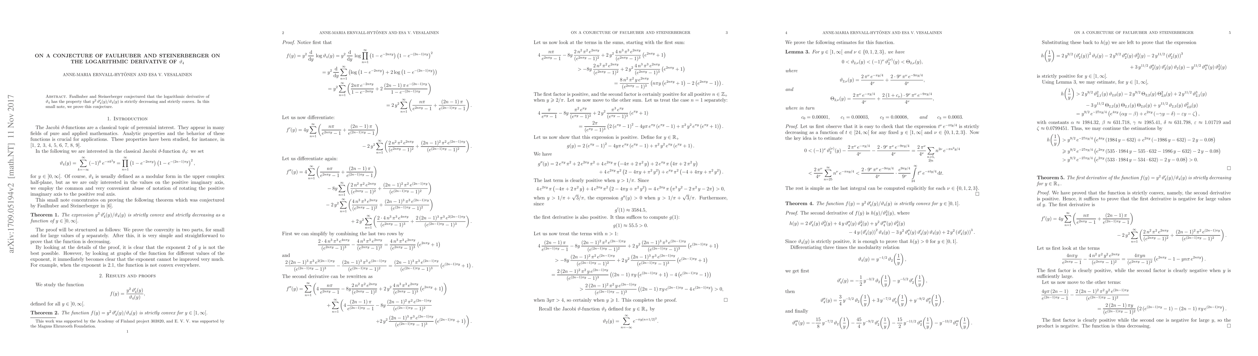 The research paper proves a conjecture about the logarithmic derivative of $ heta_4$, showing that $y^2 heta'_4(y)/ heta_4(y)$ is strictly decreasing and convex.