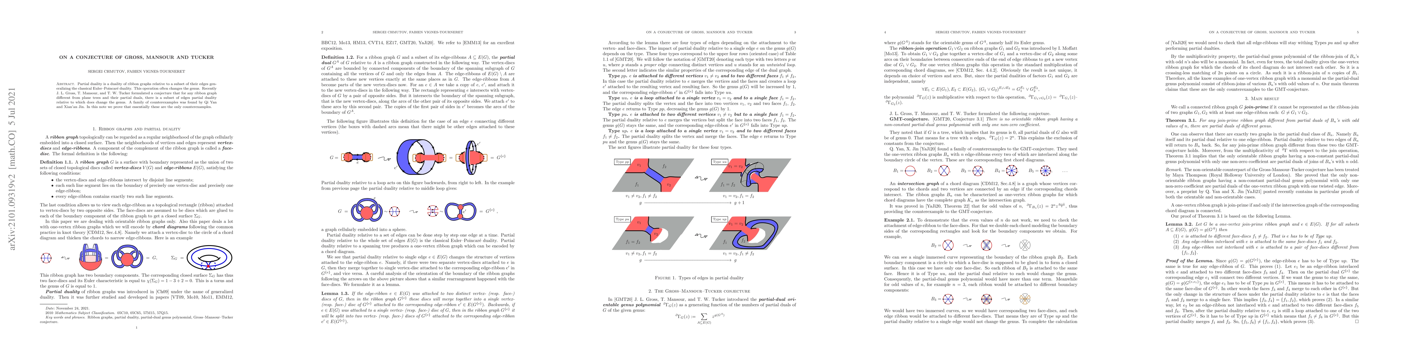 Partial duality is a duality of ribbon graphs relative to a subset of their edges generalizing the classical Euler-Poincare duality. This operation often changes the genus. Recently J.L.Gross, T.Mansour, and T.W.Tucker formulated a conjecture that for any ribbon graph different from plane trees and their partial duals, there is a subset of edges partial duality relative to which does change the genus. A family of counterexamples was found by Qi Yan and Xian'an Jin. In this note we prove that essentially these are the only counterexamples.