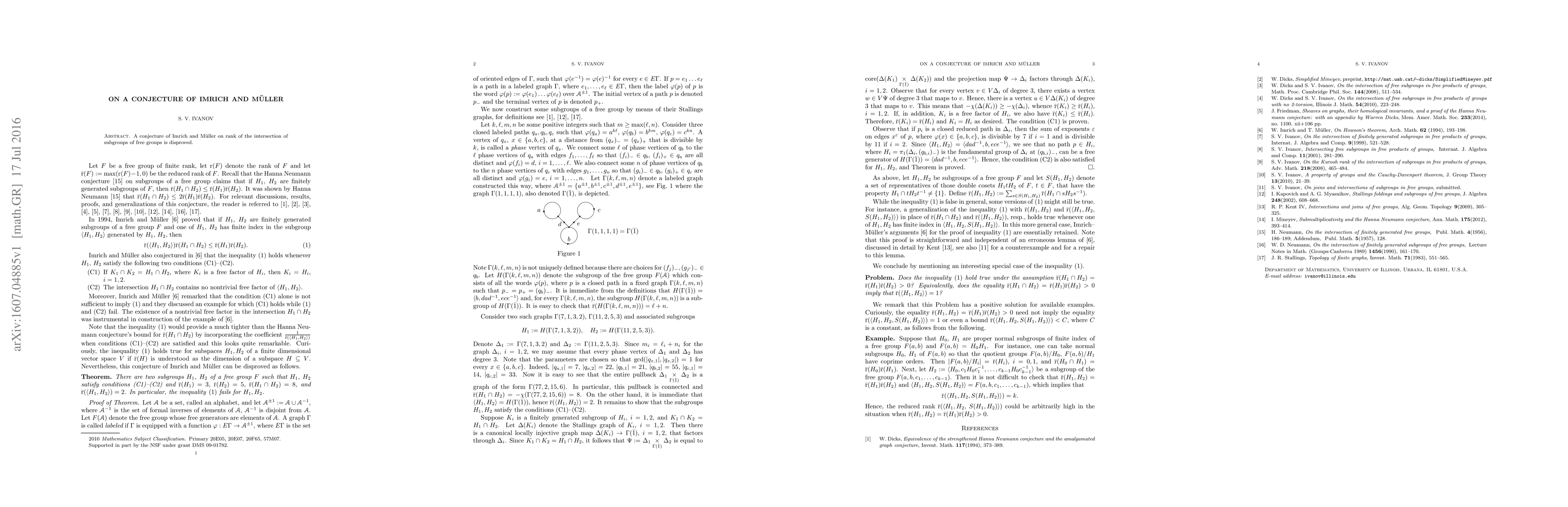 A conjecture of Imrich and M\"uller on rank of the intersection of subgroups of free groups is disproved.