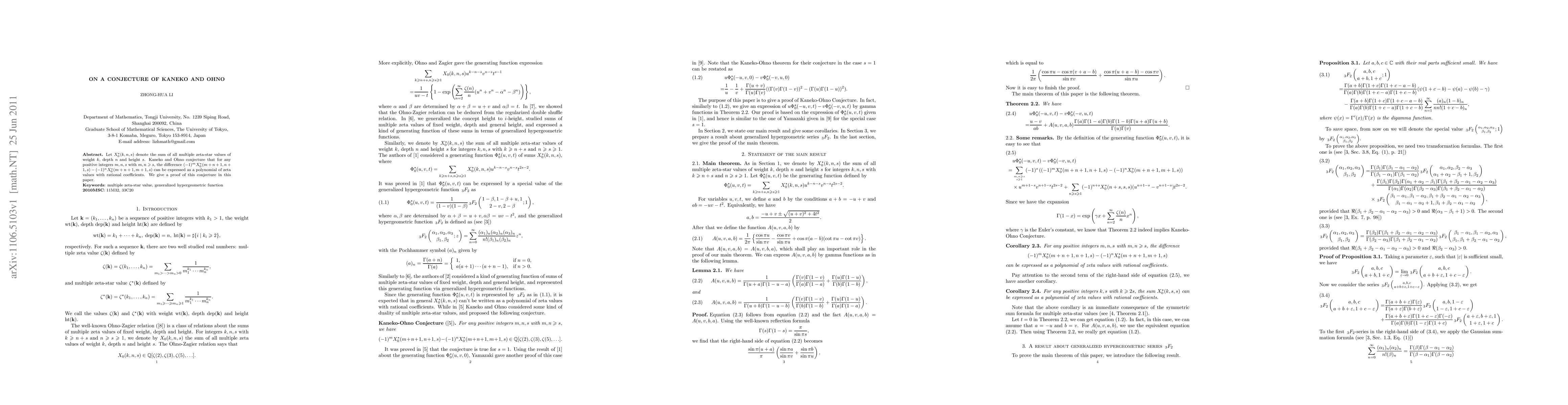Let $X_0^{\star}(k,n,s)$ denote the sum of all multiple zeta-star values of weight $k$, depth $n$ and height $s$. Kaneko and Ohno conjecture that for any positive integers $m,n,s$ with $m,n\geqslant s$, the difference $(-1)^mX_0^{\star}(m+n+1,n+1,s)-(-1)^nX_0^{\star}(m+n+1,m+1,s)$ can be expressed as a polynomial of zeta values with rational coefficients. We give a proof of this conjecture in this paper.