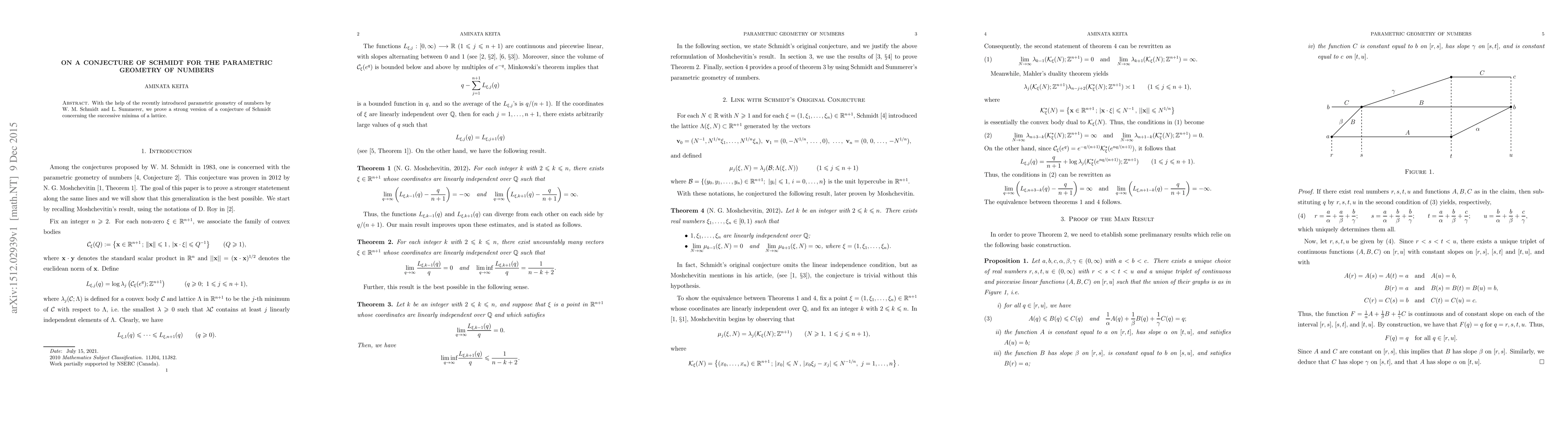 With the help of the recently introduced parametric geometry of numbers by W. M. Schmidt and L. Summerer, we prove a strong version of a conjecture of Schmidt concerning the successive minima of a lattice.
