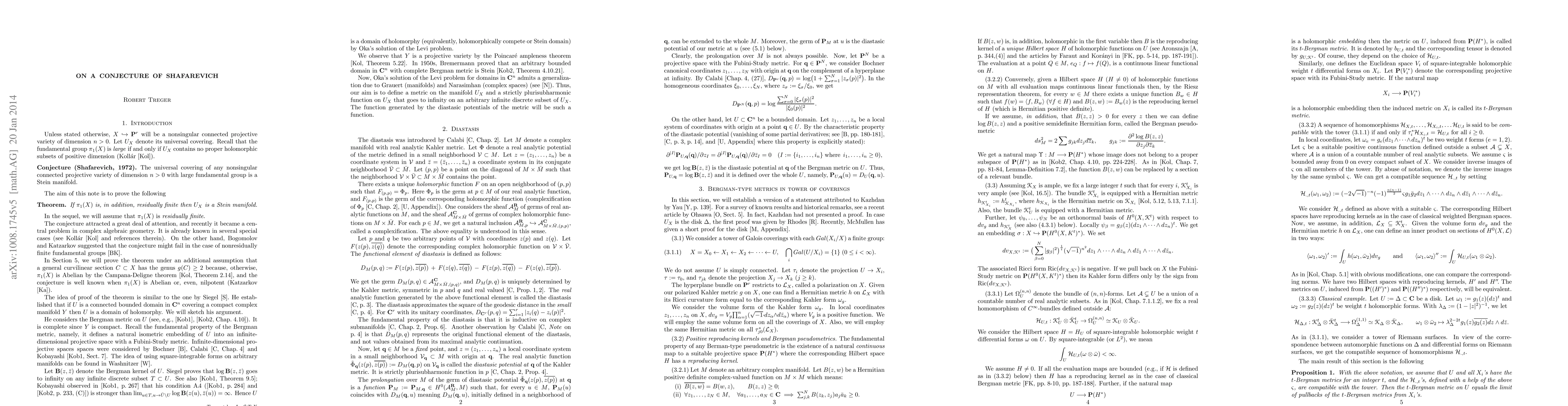 Researchers prove a conjecture of Shafarevich about universal coverings of projective manifolds under the condition that the fundamental group is residually finite. The discovery sheds light on a long-standing problem in topology.
