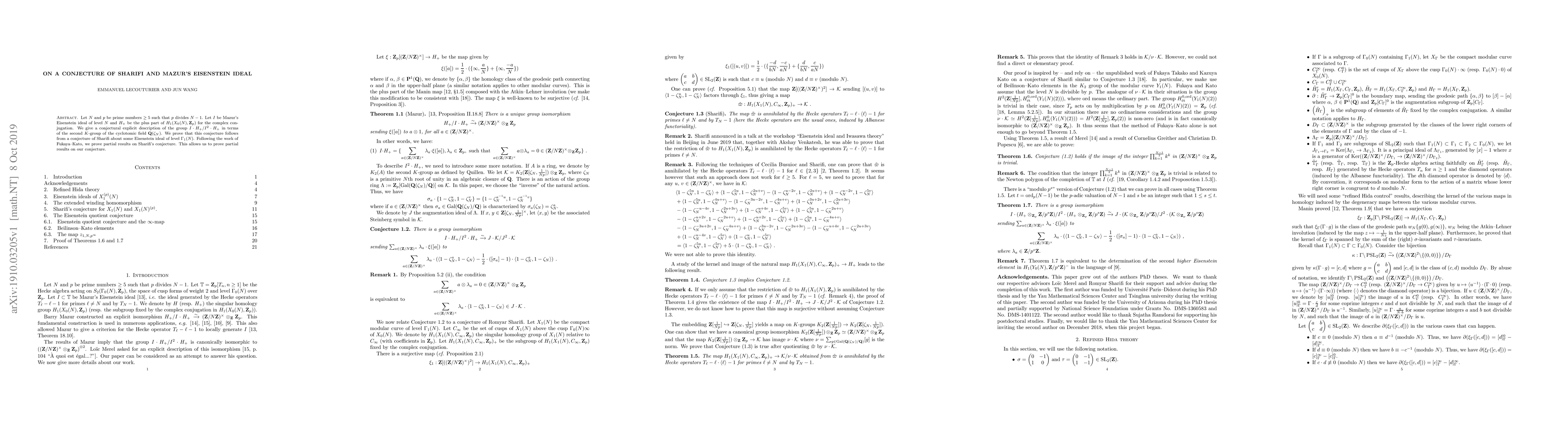This paper proposes a conjecture relating Mazur's Eisenstein ideal $I$ at level $N$ to the plus part of a certain homology group $H_+$, expressed in terms of the second $K$-group of a cyclotomic field. It demonstrates that this conjecture implies a related conjecture by Sharifi, and uses partial results from the work of Fukaya-Kato to support both conjectures.