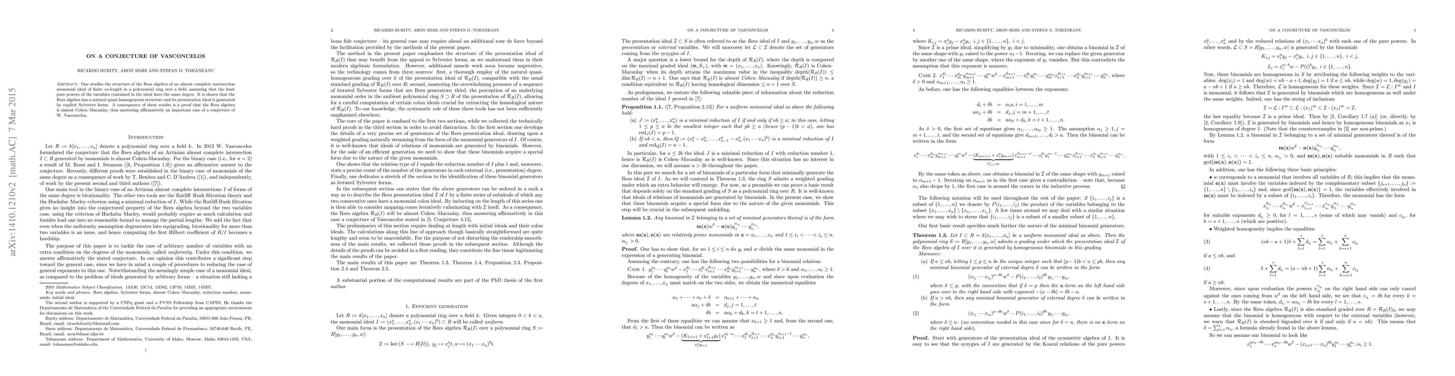 This paper investigates the structure of the Rees algebra for a specific type of monomial ideal, proving it has a quasi-homogeneous structure and its presentation ideal is generated by explicit Sylvester forms. The study concludes by confirming the Rees algebra is almost Cohen-Macaulay, thereby resolving an important conjecture by W. Vasconcelos.