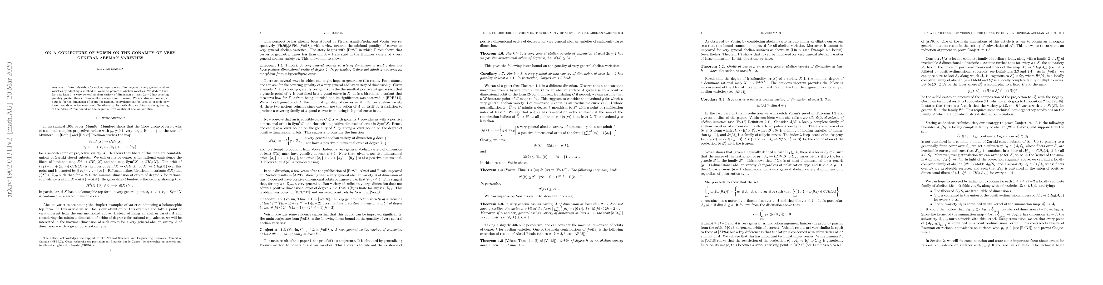 Summary: This paper confirms Voisin's conjecture on the gonality of very general abelian varieties by proving that for $k \geq 3$, a very general abelian variety of dimension at least $2k-2$ has covering gonality greater than $k$. Additionally, it explores the relationship between the dimension of orbits for rational equivalence and provides new lower bounds on the degree of irrationality of abelian varieties.