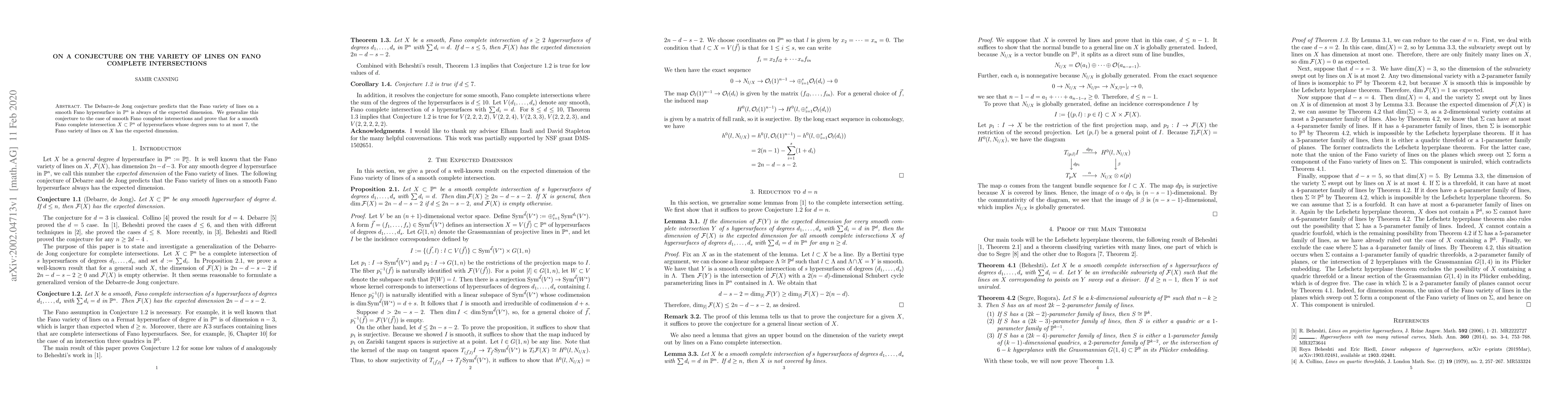 Researchers prove a generalization of Debarre-de Jong conjecture for Fano complete intersections in hypersurfaces with degrees up to 7, confirming the expected dimensionality of lines on these varieties.