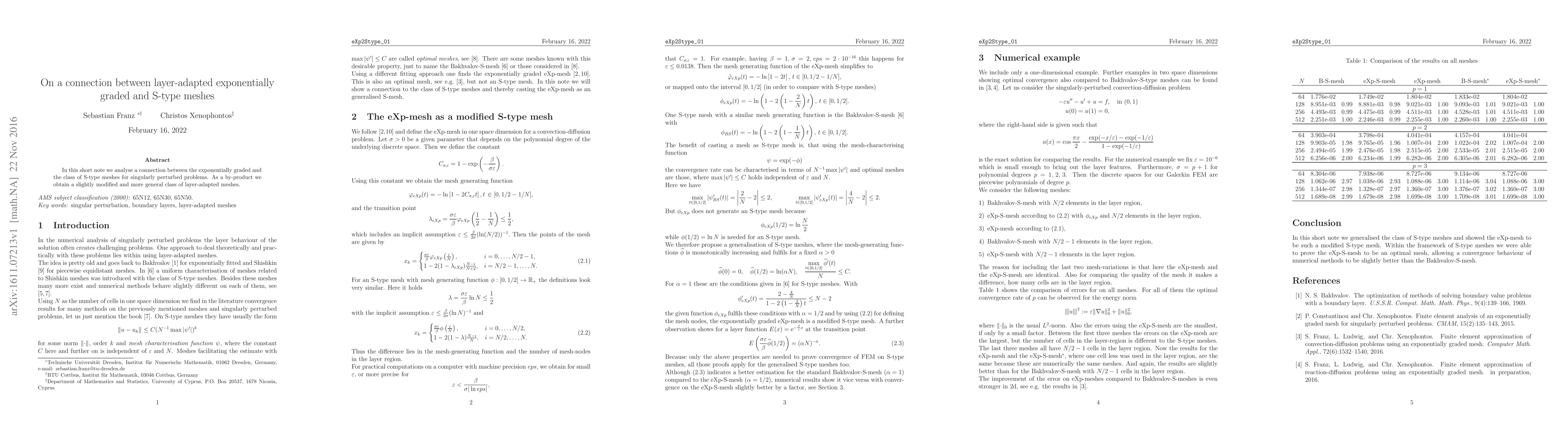 In this short note we analyse a connection between the exponentially graded and the class of S-type meshes for singularly perturbed problems. As a by-product we obtain a slightly modified and more general class of layer-adapted meshes.