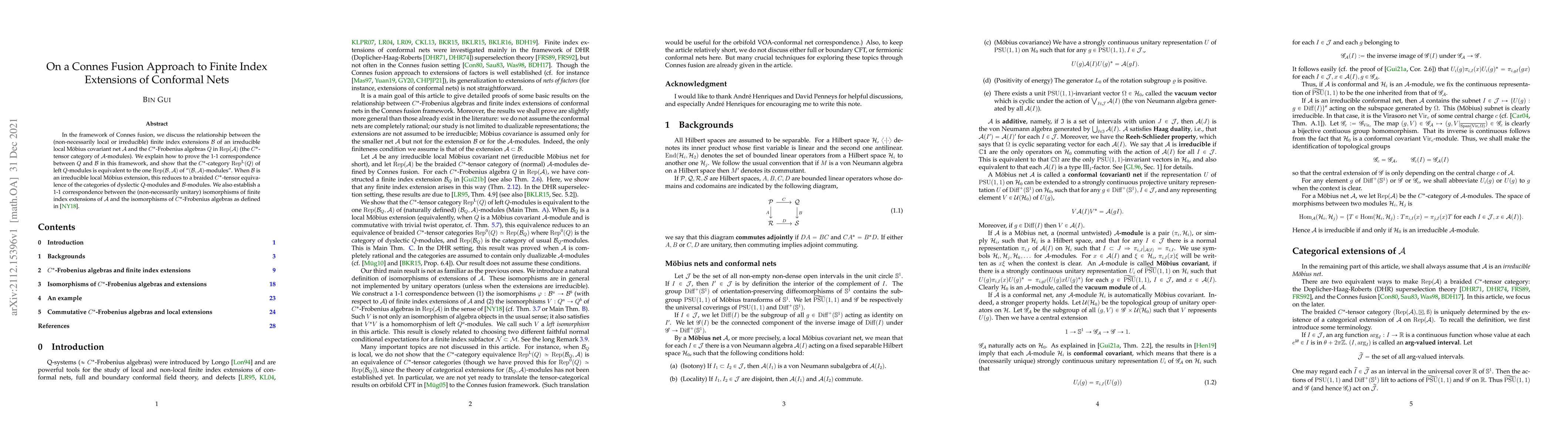 Summary: This paper outlines a method using Connes fusion theory to demonstrate fundamental properties of finite index extensions for irreducible local Möbius covariant nets, advancing understanding in conformal net research.