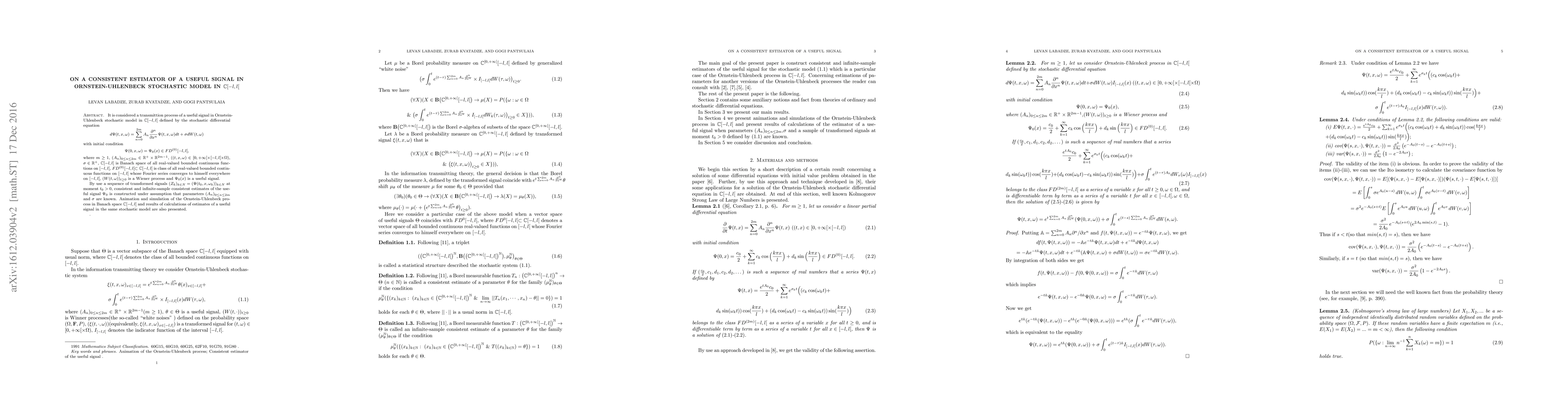 This research paper proposes a method for estimating a useful signal in an Ornstein-Uhlenbeck model with known parameters, resulting in consistent and infinite-sample consistent estimations of the signal.