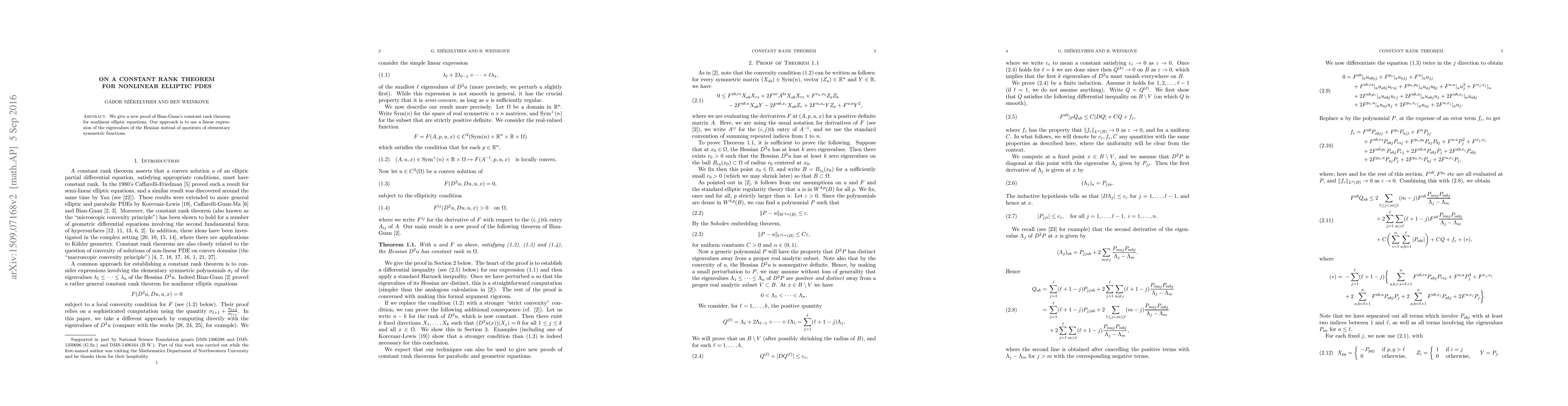 We give a new proof of Bian-Guan's constant rank theorem for nonlinear elliptic equations. Our approach is to use a linear expression of the eigenvalues of the Hessian instead of quotients of elementary symmetric functions.