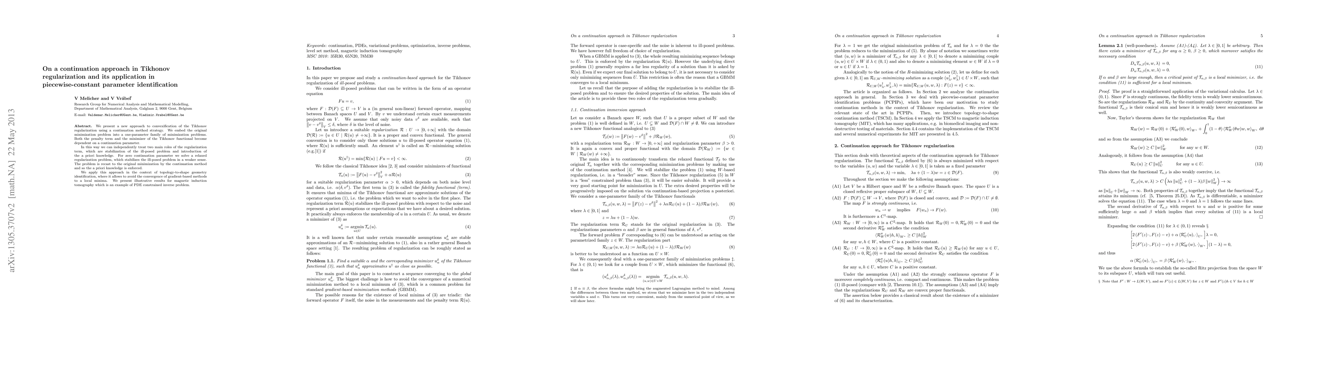 This paper introduces a continuation method for convexifying Tikhonov regularization, enabling independent treatment of stabilization and a priori knowledge. The approach is applied to topology-to-shape geometry identification, demonstrating improved convergence in magnetic induction tomography.