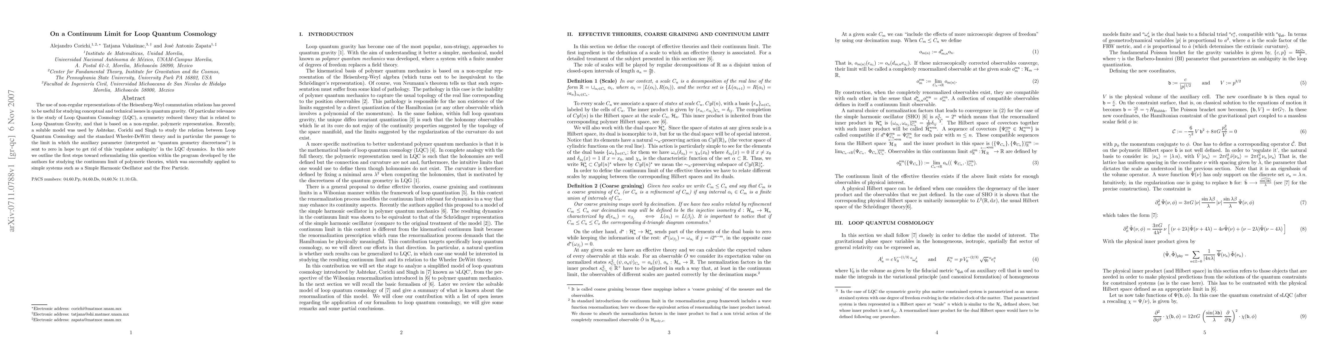 The use of non-regular representations of the Heisenberg-Weyl commutation relations has proved to be useful for studying conceptual and technical issues in quantum gravity. Of particular relevance is the study of Loop Quantum Cosmology (LQC), a symmetry reduced theory that is related to Loop Quantum Gravity, and that is based on a non-regular, polymeric representation. Recently, a soluble model was used by Ashtekar, Corichi and Singh to study the relation between Loop Quantum Cosmology and the standard Wheeler-DeWitt theory and in particular the passage to the limit in which the auxiliary parameter (interpreted as "quantum geometry discreetness") is sent to zero in hope to get rid of this `regulator ambiguity' in the LQC dynamics. In this note we outline the first steps toward reformulating this question within the program developed by the authors for studying the continuum limit of polymeric theories, which was successfully applied to simple systems such as a Simple Harmonic Oscillator and the Free Particle.