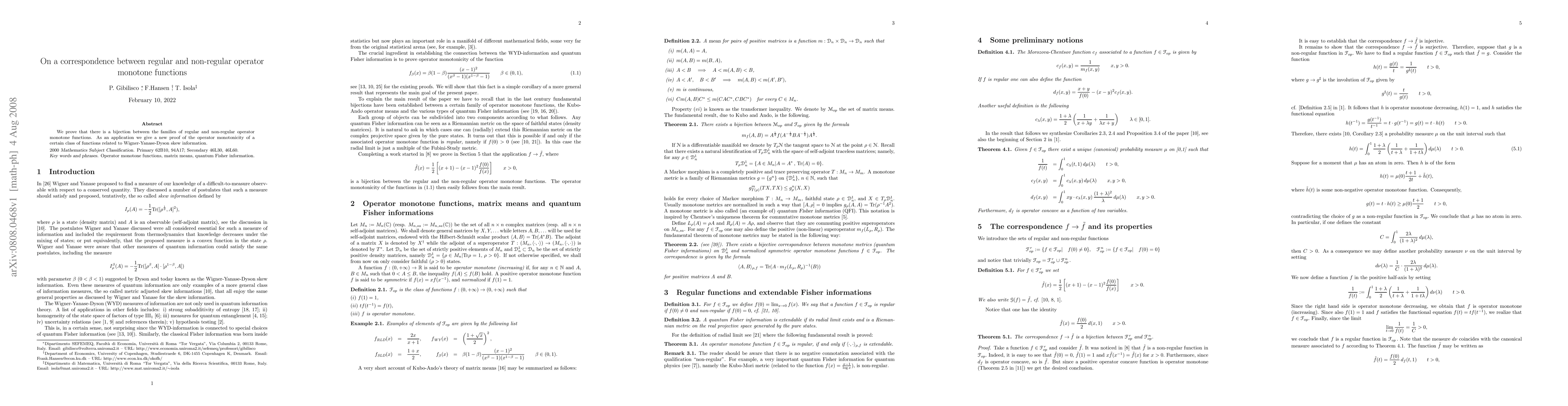 We prove that there is a bijection between the families of regular and non-regular operator monotone functions. As an application we give a new proof of the operator monotonicity of a certain class of functions related to Wigner-Yanase-Dyson skew information.