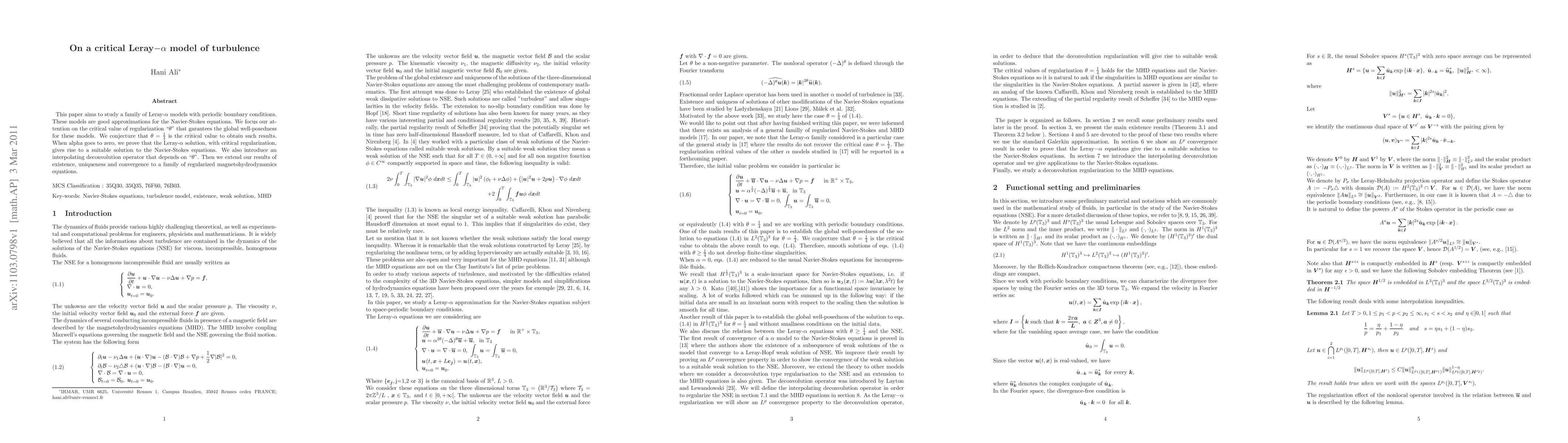 This paper investigates the Leray-$\alpha$ models for turbulence, focusing on the critical regularization value $\theta=1/4$ that ensures global well-posedness. It proves the convergence of these models to the Navier-Stokes equations as $\alpha$ approaches zero and introduces an interpolating deconvolution operator dependent on $\theta$, extending results to regularized magnetohydrodynamics.