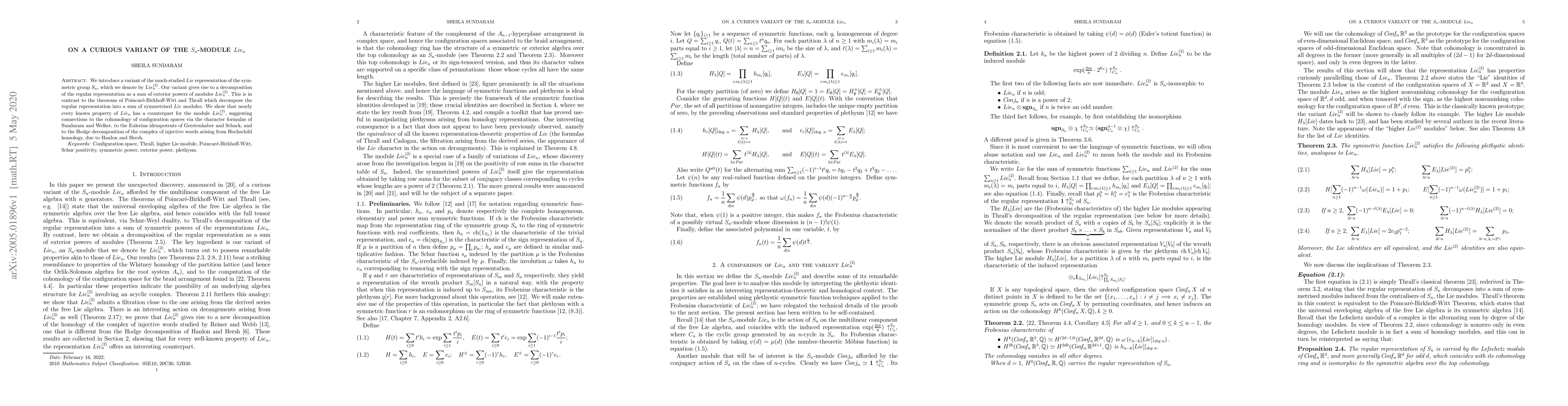 We introduce a variant of the much-studied $Lie$ representation of the symmetric group $S_n$, which we denote by $Lie_n^{(2)}.$ Our variant gives rise to a decomposition of the regular representation as a sum of {exterior} powers of modules $Lie_n^{(2)}.$ This is in contrast to the theorems of Poincar\'e-Birkhoff-Witt and Thrall which decompose the regular representation into a sum of symmetrised $Lie$ modules. We show that nearly every known property of $Lie_n$ has a counterpart for the module $Lie_n^{(2)},$ suggesting connections to the cohomology of configuration spaces via the character formulas of Sundaram and Welker, to the Eulerian idempotents of Gerstenhaber and Schack, and to the Hodge decomposition of the complex of injective words arising from Hochschild homology, due to Hanlon and Hersh.