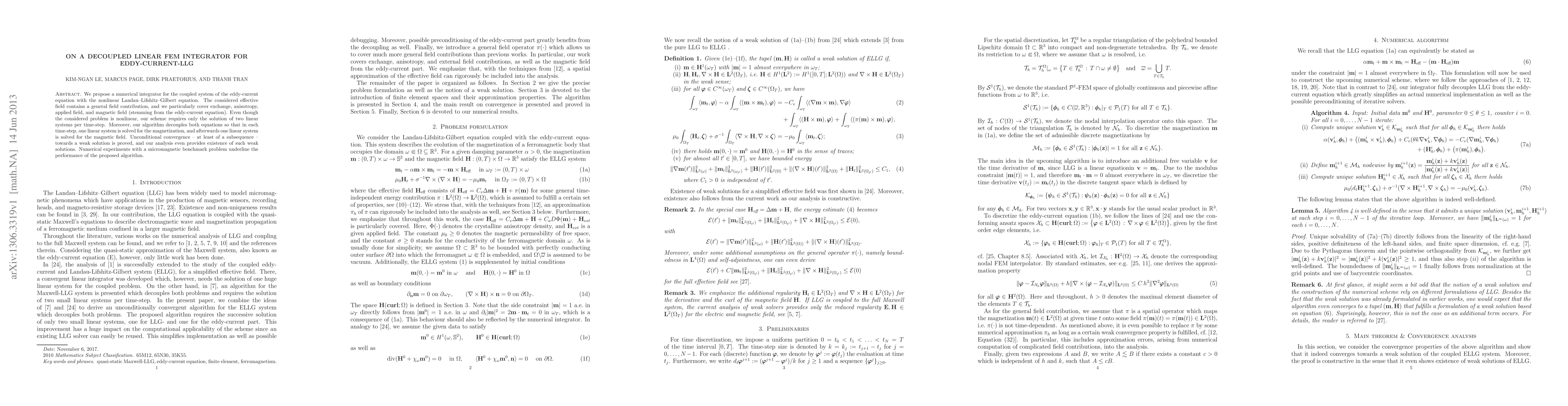 Researchers propose a numerical method to solve nonlinear eddy-current and Landau-Lifshitz-Gilbert equations simultaneously with just two linear systems per time-step, offering unconditional convergence.