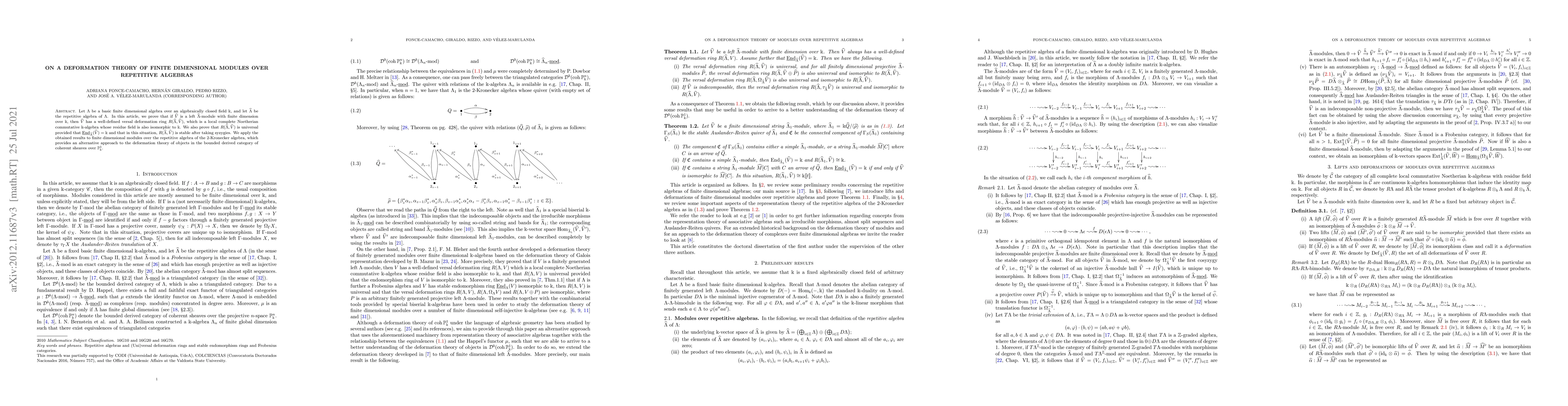 Researchers developed a deformation theory for finite dimensional modules over repetitive algebras, providing an alternative approach to understanding objects in the bounded derived category of coherent sheaves over projective space.