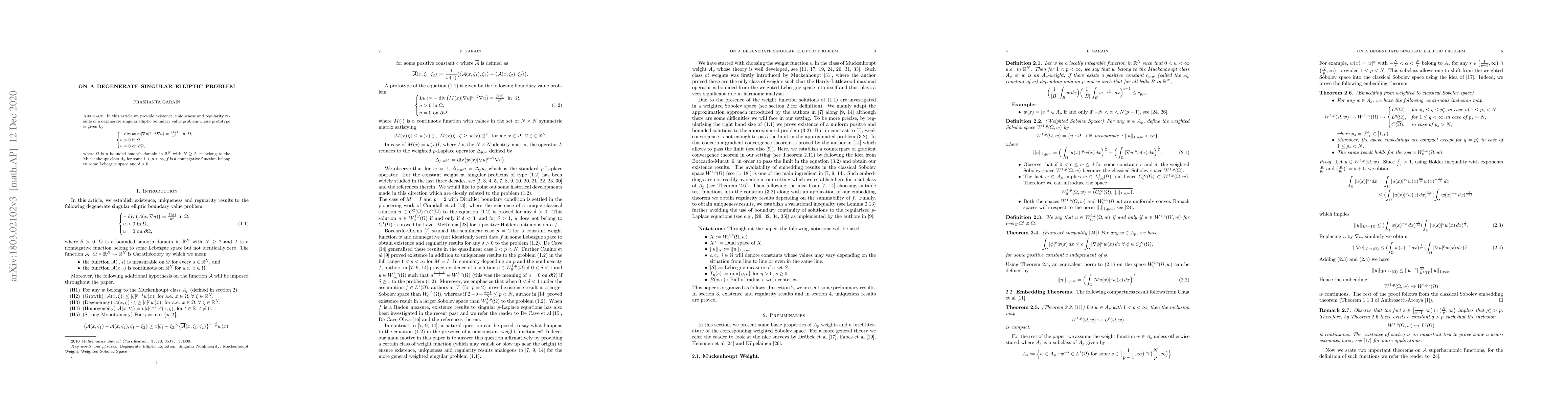 In this article we provide existence, uniqueness and regularity results of a degenerate singular elliptic boundary value problem whose prototype is given by \begin{gather*} \begin{cases} -\operatorname{div}(w(x)|\nabla u|^{p-2}\nabla u)=\frac{f(x)}{u^\delta}\,\,\text{ in }\,\,\Omega, u>0\text{ in }\Omega,\\ u = 0 \text{ on } \partial\Omega, \end{cases} \end{gather*} where $\Omega$ is a bounded smooth domain in $\mathbb{R}^N$ with $N\geq 2$, $w$ belong to the Muckenhoupt class $A_p$ for some $1