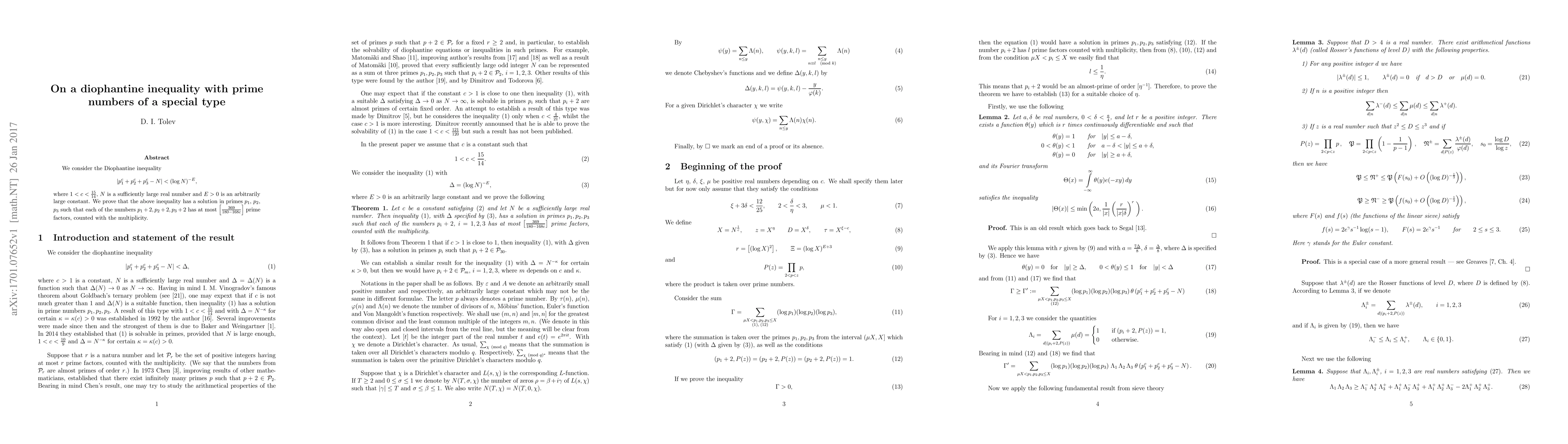 We consider the Diophantine inequality \[ \left| p_1^{c} + p_2^{c} + p_3^c- N \right| < (\log N)^{-E} , \] where $1 < c < \frac{15}{14}$, $N$ is a sufficiently large real number and $E>0$ is an arbitrarily large constant. We prove that the above inequality has a solution in primes $p_1$, $p_2$, $p_3$ such that each of the numbers $p_1 + 2, p_2 + 2, p_3 + 2$ has at most $\left[ \frac{369}{180 - 168 c} \right]$ prime factors, counted with the multiplicity.