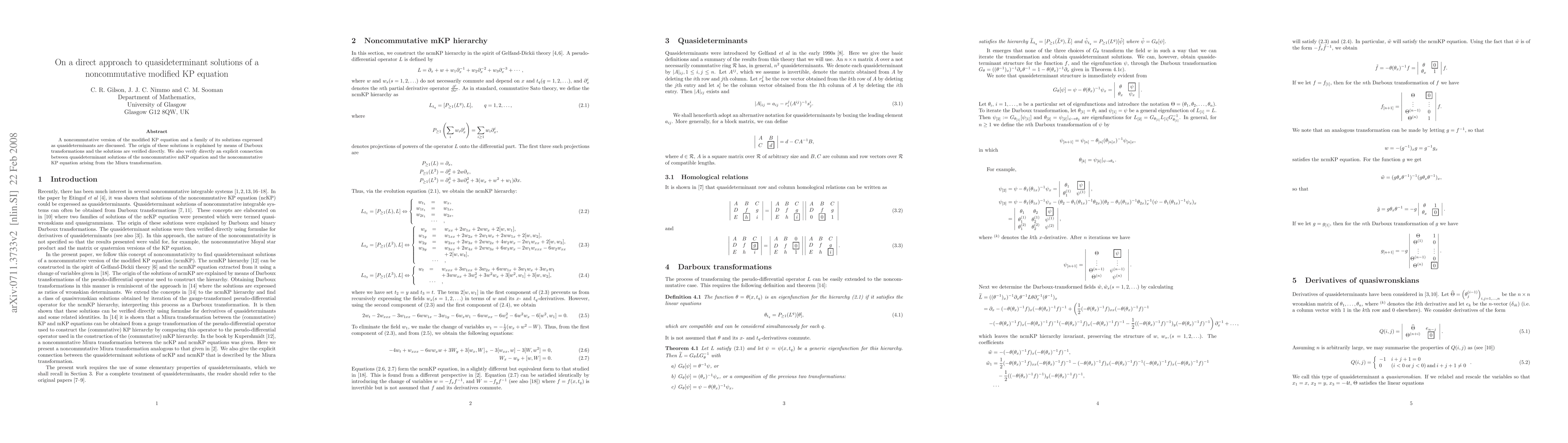 A noncommutative version of the modified KP equation and a family of its solutions expressed as quasideterminants are discussed. The origin of these solutions is explained by means of Darboux transformations and the solutions are verified directly. We also verify directly an explicit connection between quasideterminant solutions of the noncommutative mKP equation and the noncommutative KP equation arising from the Miura transformation.