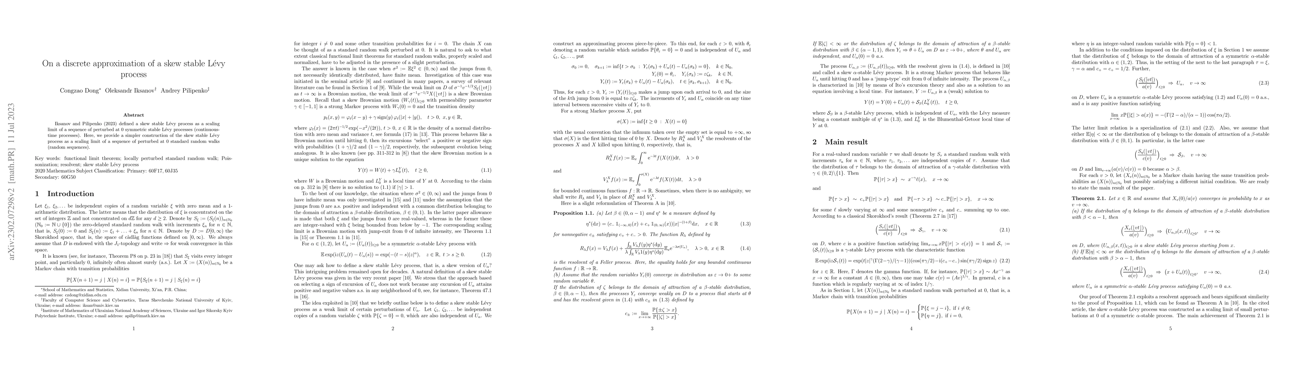 This paper presents a simpler construction of a skew stable Lévy process as a scaling limit of perturbed standard random walks, contrasting with the previous continuous-time process definition by Iksanov and Pilipenko (2023).