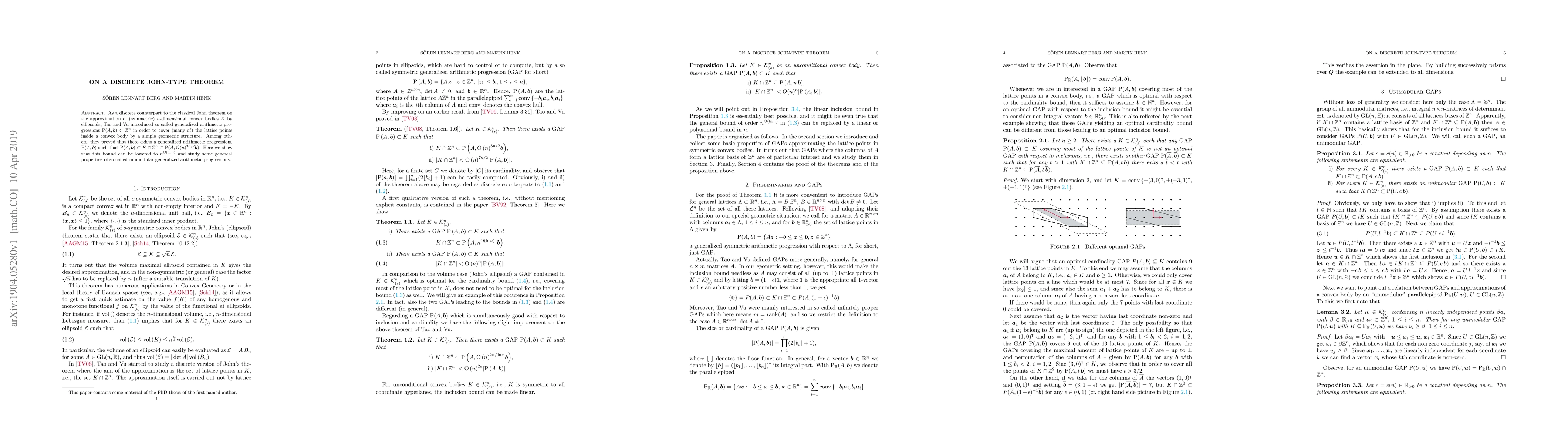 As a discrete counterpart to the classical John theorem on the approximation of (symmetric) $n$-dimensional convex bodies $K$ by ellipsoids, Tao and Vu introduced so called generalized arithmetic progressions $P(A,b)\subset Z^n$ in order to cover (many of) the lattice points inside a convex body by a simple geometric structure. Among others, they proved that there exists a generalized arithmetic progressions $P(A,b)$ such that $P(A,b)\subset K\cap Z^n\subset P(A,O(n)^{3n/2}b)$. Here we show that this bound can be lowered to $n^{O(\ln n)}$ and study some general properties of so called unimodular generalized arithmetic progressions.