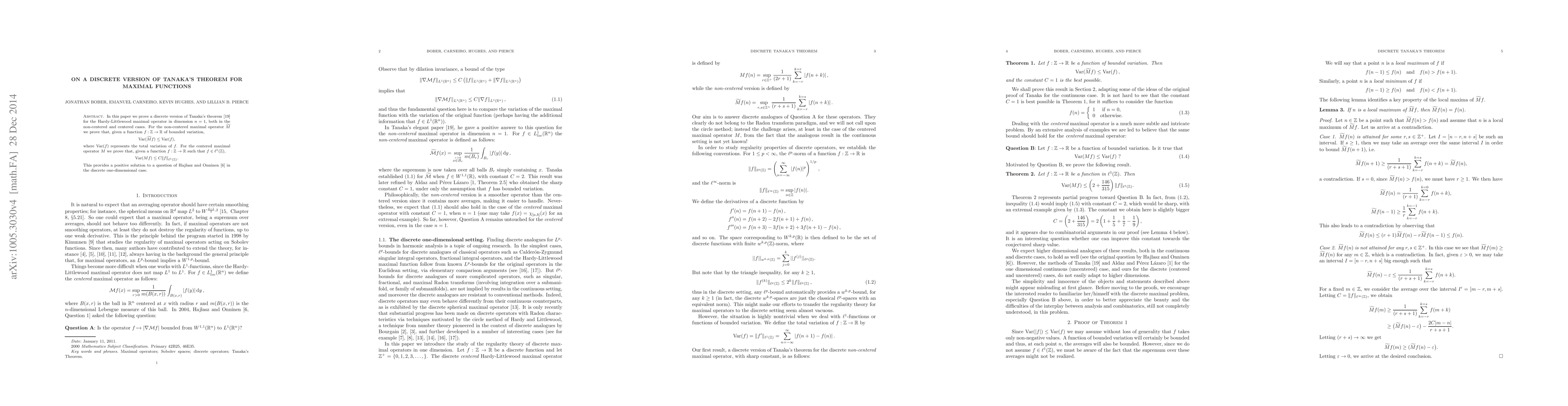 This paper presents a discrete version of Tanaka's Theorem for the Hardy-Littlewood maximal operator in one dimension, addressing both non-centered and centered cases. It proves that for a function of bounded variation, the total variation of the non-centered maximal operator is less than or equal to the function's total variation. For the centered maximal operator, it shows that the total variation is bounded by a constant times the $ell^1$ norm of the function, resolving a question posed by Hajłasz and Onninen in the discrete, one-dimensional context.