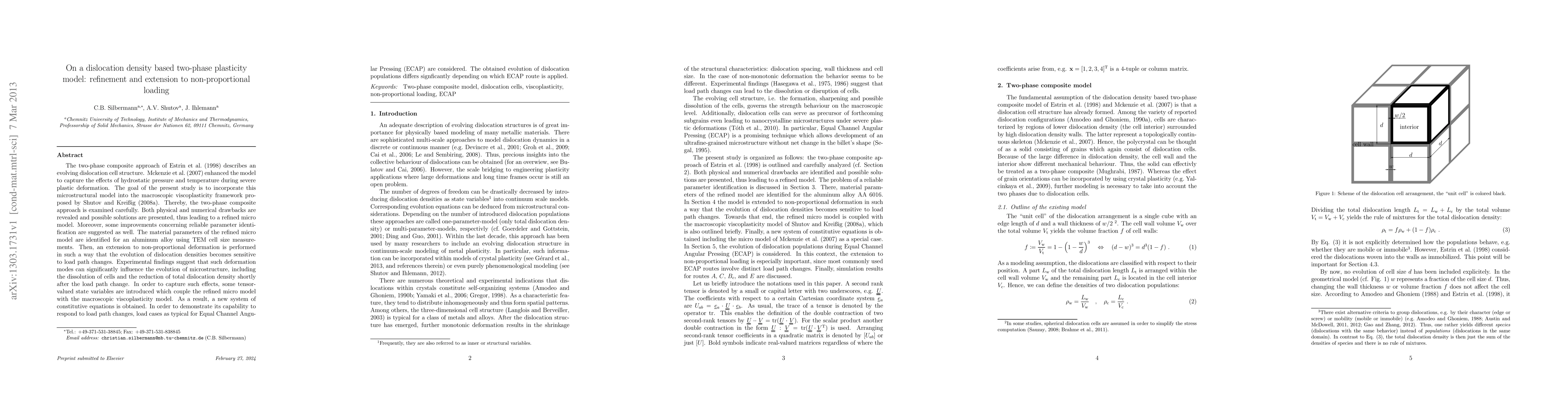 The two-phase composite approach of Estrin et al. (1998) describes an evolving dislocation cell structure. Mckenzie et al. (2007) enhanced the model to capture the effects of hydrostatic pressure and temperature during severe plastic deformation. The goal of the present study is to incorporate this microstructural model into the macroscopic viscoplasticity framework proposed by Shutov and Krei\ss ig (2008a). Thereby, the two-phase composite approach is examined carefully. Both physical and numerical drawbacks are revealed and possible solutions are presented, thus leading to a refined micro model. Moreover, some improvements concerning reliable parameter identification are suggested as well. The material parameters of the refined micro model are identified for an aluminum alloy using TEM cell size measurements. Then, an extension to non-proportional deformation is performed in such a way that the evolution of dislocation densities becomes sensitive to load path changes. Experimental findings suggest that such deformation modes can significantly influence the evolution of microstructure, including the dissolution of cells and the reduction of total dislocation density shortly after the load path change. In order to capture such effects, some tensor-valued state variables are introduced which couple the refined micro model with the macroscopic viscoplasticity model. As a result, a new system of constitutive equations is obtained. In order to demonstrate its capability to respond to load path changes, load cases as typical for Equal Channel Angular Pressing (ECAP) are considered. The obtained evolution of dislocation populations differs signficantly depending on which ECAP route is applied.