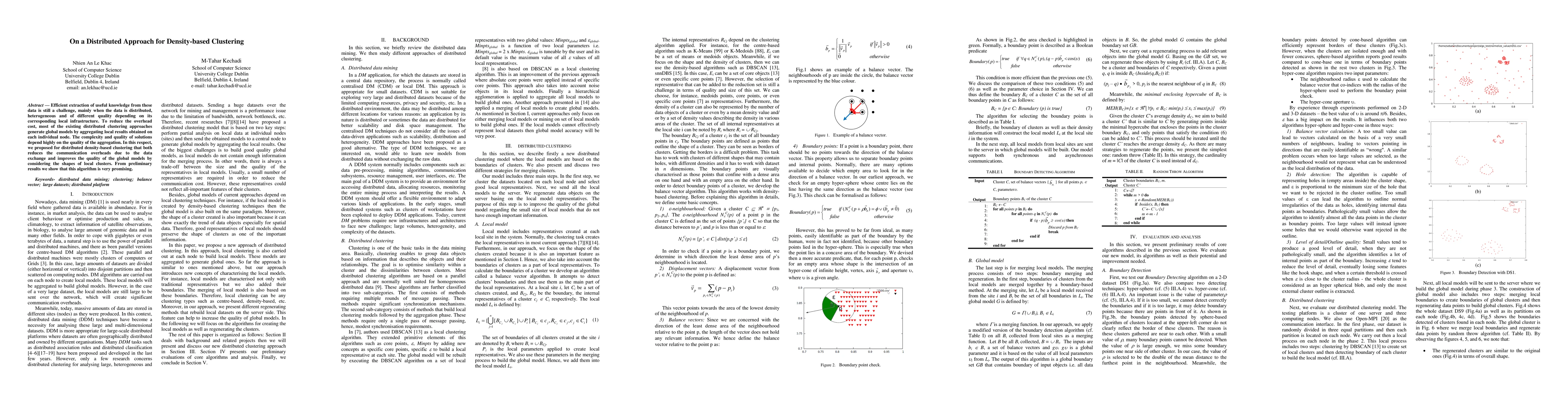 This paper proposes a distributed density-based clustering approach that minimizes communication overheads and improves global model quality by considering local cluster shapes, demonstrating promising preliminary results.