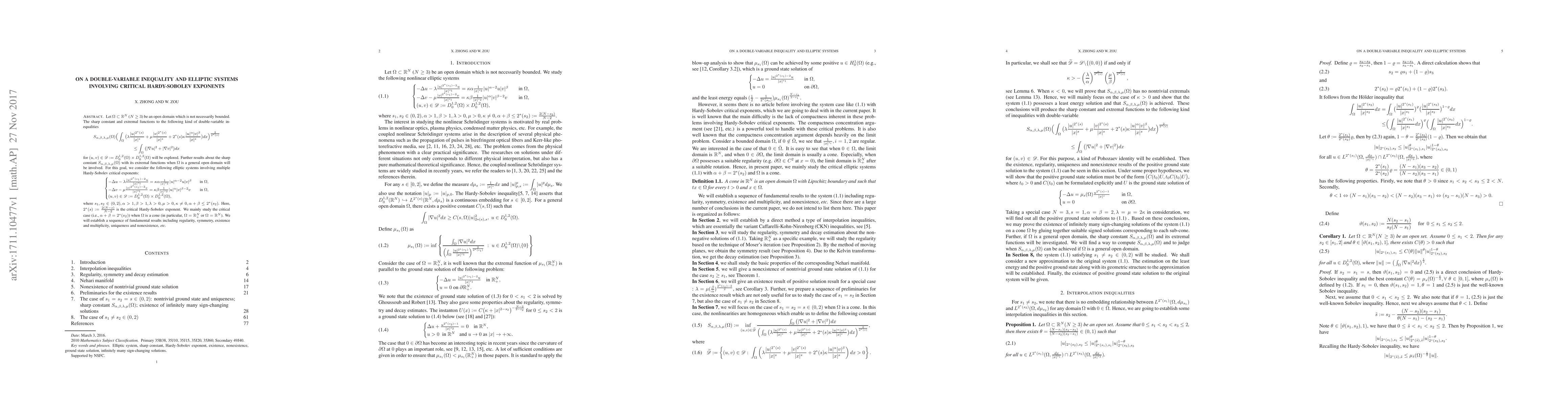 This research paper explores double-variable inequalities involving critical Hardy-Sobolev exponents for elliptic systems in open domains with unbounded regions.