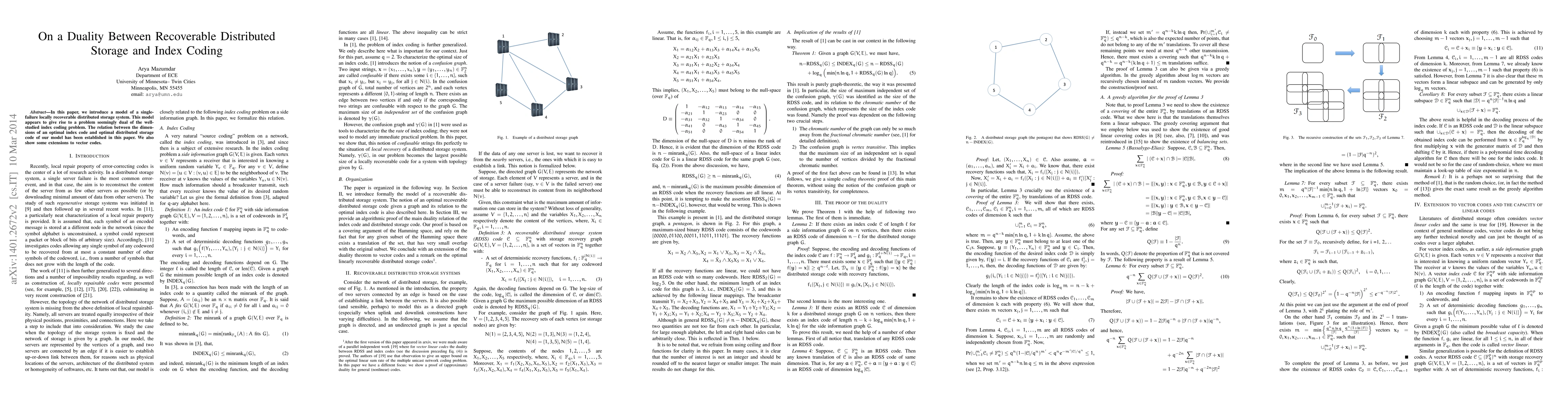 This paper explores a single-failure locally recoverable distributed storage system, revealing a duality with the index coding problem. It establishes a relationship between the dimensions of optimal index codes and optimal distributed storage codes, and extends these findings to vector codes.