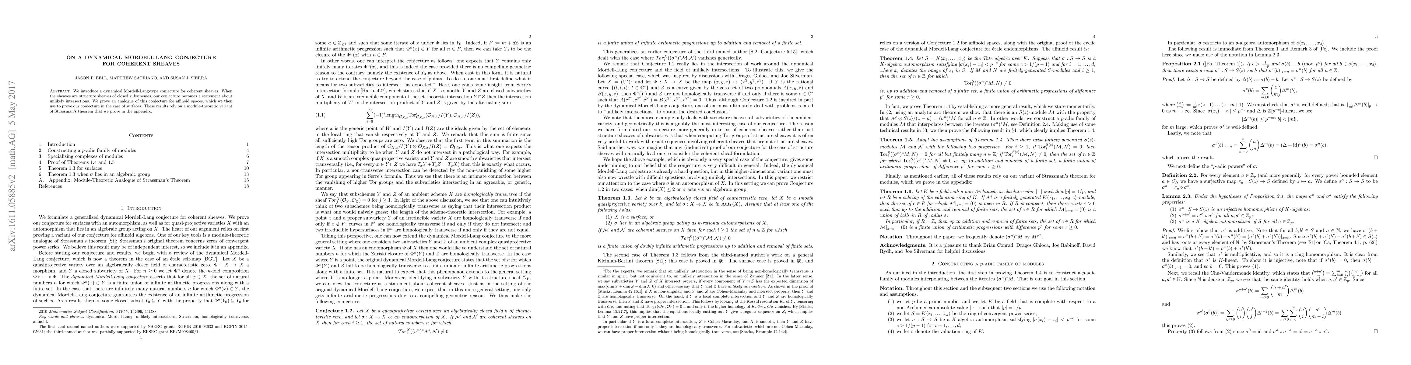 The paper introduces a dynamical Mordell-Lang-type conjecture for coherent sheaves, proving an analogue for affinoid spaces and subsequently for surfaces using a module-theoretic variant of Strassman's theorem.