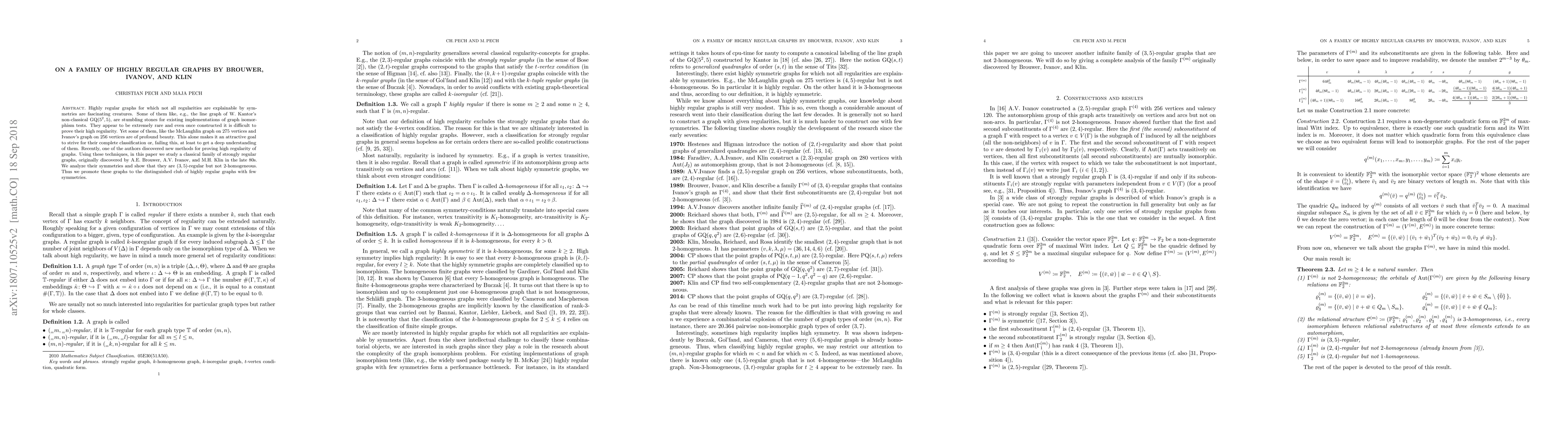 Highly regular graphs for which not all regularities are explainable by symmetries are fascinating creatures. Some of them like, e.g., the line graph of W.~Kantor's non-classical $\mathrm{GQ}(5^2,5)$, are stumbling stones for existing implementations of graph isomorphism tests. They appear to be extremely rare and even once constructed it is difficult to prove their high regularity. Yet some of them, like the McLaughlin graph on $275$ vertices and Ivanov's graph on $256$ vertices are of profound beauty. This alone makes it an attractive goal to strive for their complete classification or, failing this, at least to get a deep understanding of them. Recently, one of the authors discovered new methods for proving high regularity of graphs. Using these techniques, in this paper we study a classical family of strongly regular graphs, originally discovered by A.E.~Brouwer, A.V.~Ivanov, and M.H.~Klin in the late 80th. We analyze their symmetries and show that they are $(3,5)$-regular but not $2$-homogeneous. Thus we promote these graphs to the distinguished club of highly regular graphs with few symmetries.