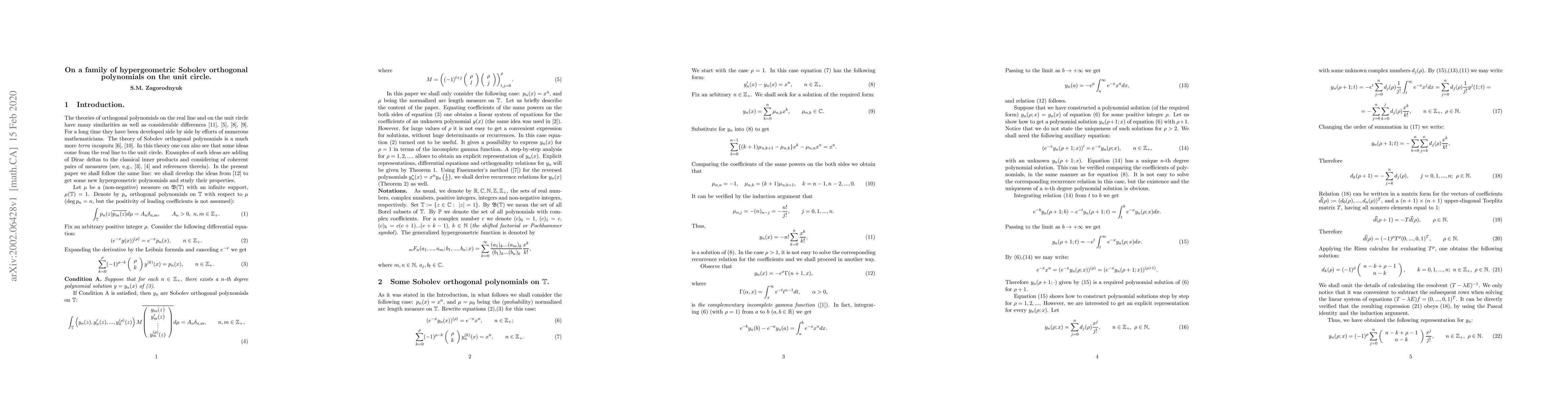 This paper investigates a family of hypergeometric polynomials $y_n(x)$ defined by a parameter $\rho$, deriving their differential equations and recurrence relations, and establishing their status as Sobolev orthogonal polynomials on the unit circle with an explicit matrix measure.