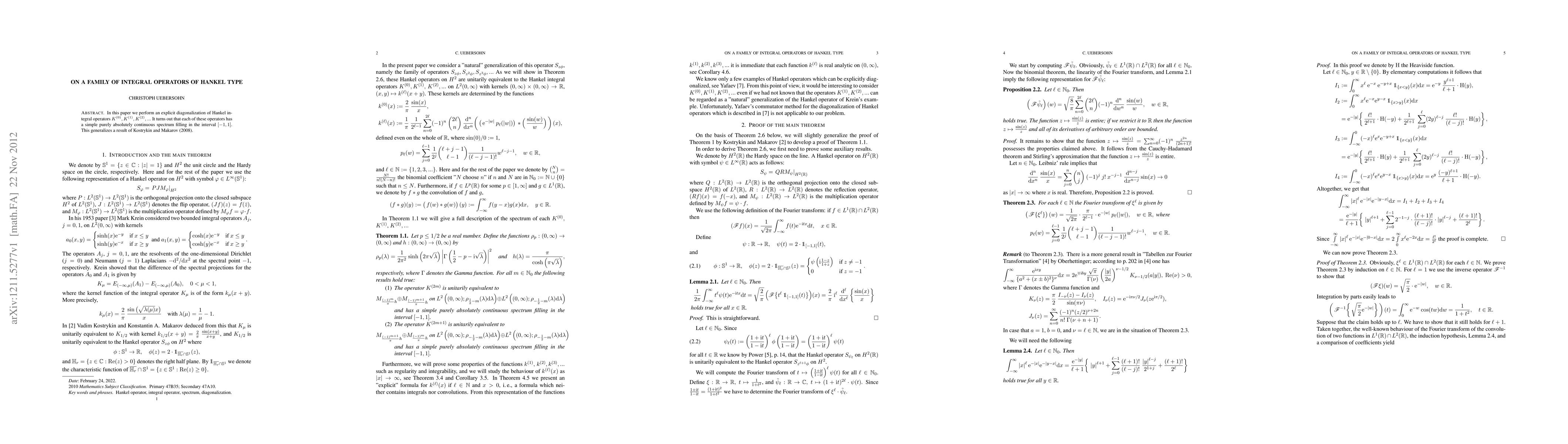 This paper explicitly diagonalizes Hankel integral operators $K^{(n)}$, revealing that each has a purely absolutely continuous spectrum within the interval $[-1,1]$. This extends a prior result by Kostrykin and Makarov (2008).