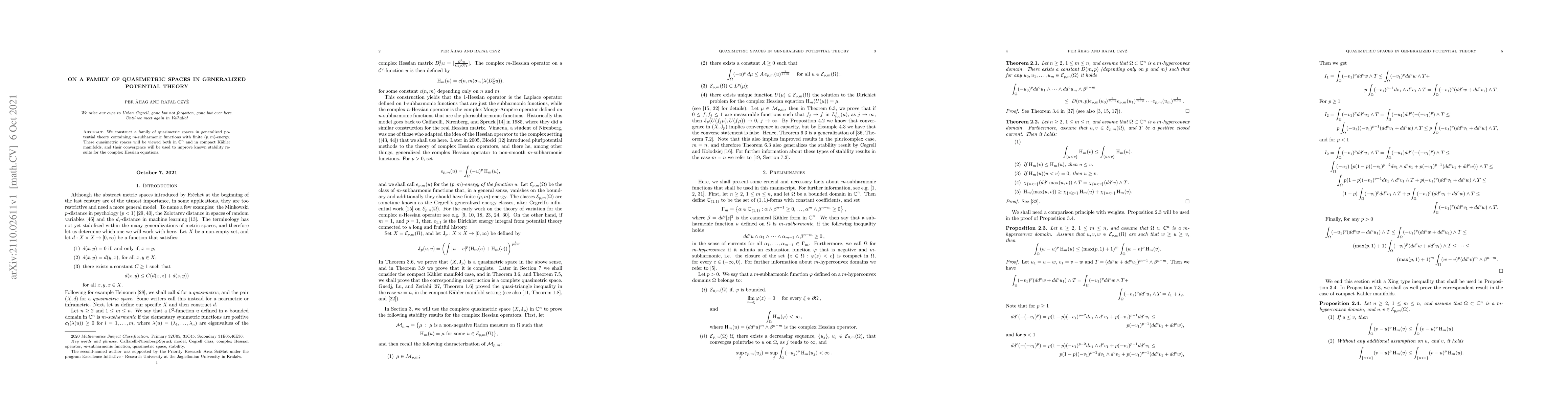 This paper constructs quasimetric spaces in generalized potential theory involving $m$-subharmonic functions with finite $(p,m)$-energy, applicable in $\mathbb{C}^n$ and compact Kähler manifolds, to enhance stability results for complex Hessian equations.