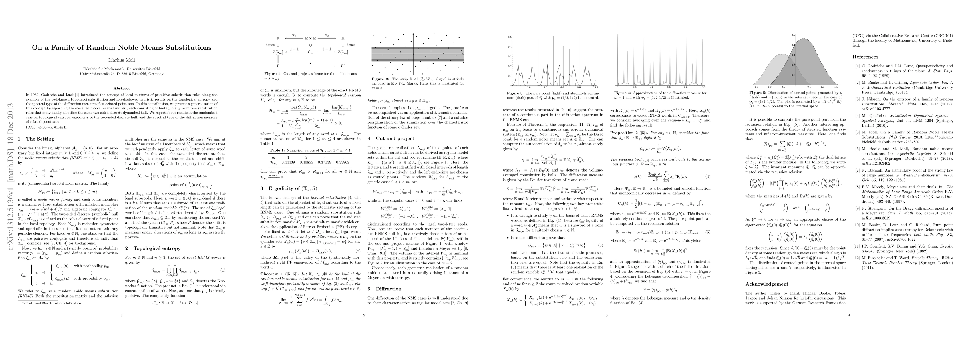 This paper generalizes the concept of noble means substitutions introduced by Godreche and Luck, focusing on families of primitive substitution rules that define the same dynamical structure. It investigates the topological entropy, ergodicity, and spectral properties of the associated point sets in the randomized case.