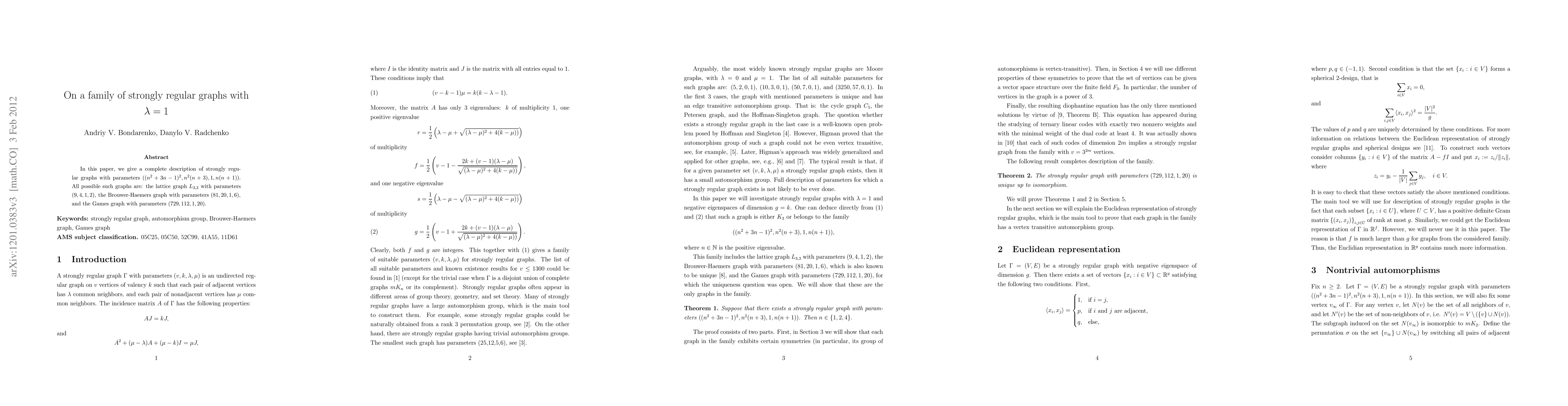 This paper thoroughly characterizes strongly regular graphs with parameters ((n^2+3n-1)^2, n^2(n+3), 1, n(n+1)), identifying three specific examples: the lattice graph $L_{3,3}$, the Brouwer-Haemers graph, and the Games graph.