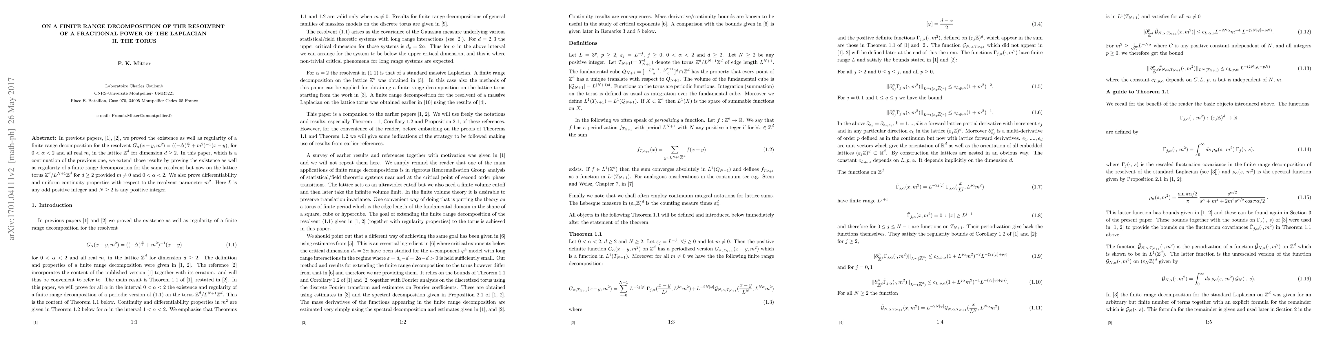 This paper extends previous research on a finite range decomposition of the resolvent of a fractional power of the Laplacian to the lattice torus, proving its existence and regularity for specific parameters.