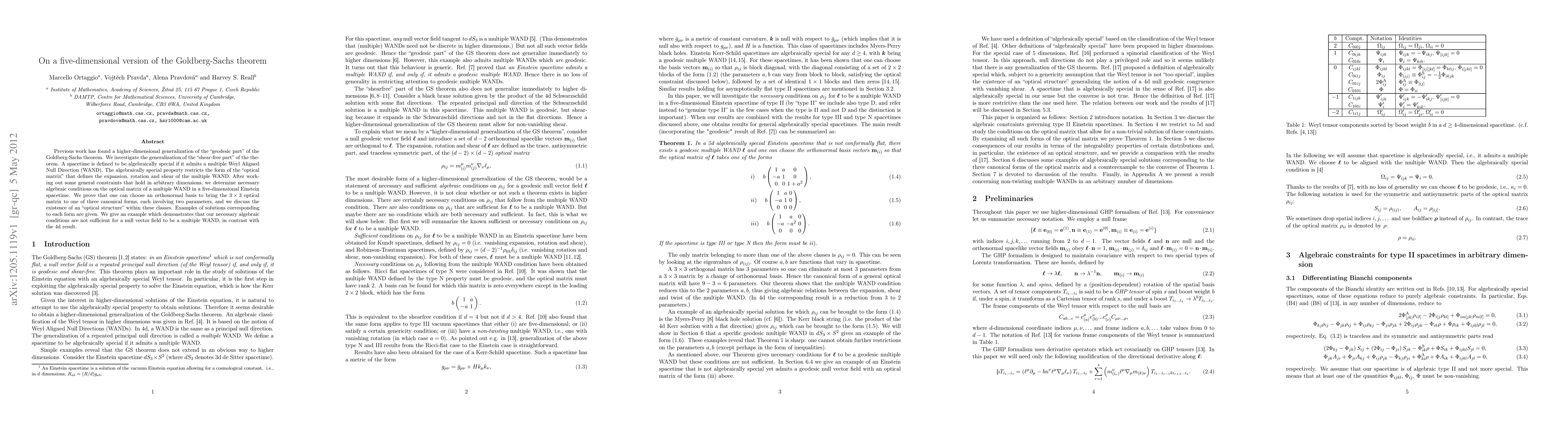 This paper generalizes the "shear-free part" of the Goldberg-Sachs theorem to five-dimensional spacetimes, defining algebraically special spacetimes with multiple Weyl Aligned Null Directions (WAND). It identifies necessary algebraic conditions for the optical matrix in five dimensions and shows three canonical forms for the matrix, contrasting with the four-dimensional result where conditions were both necessary and sufficient.