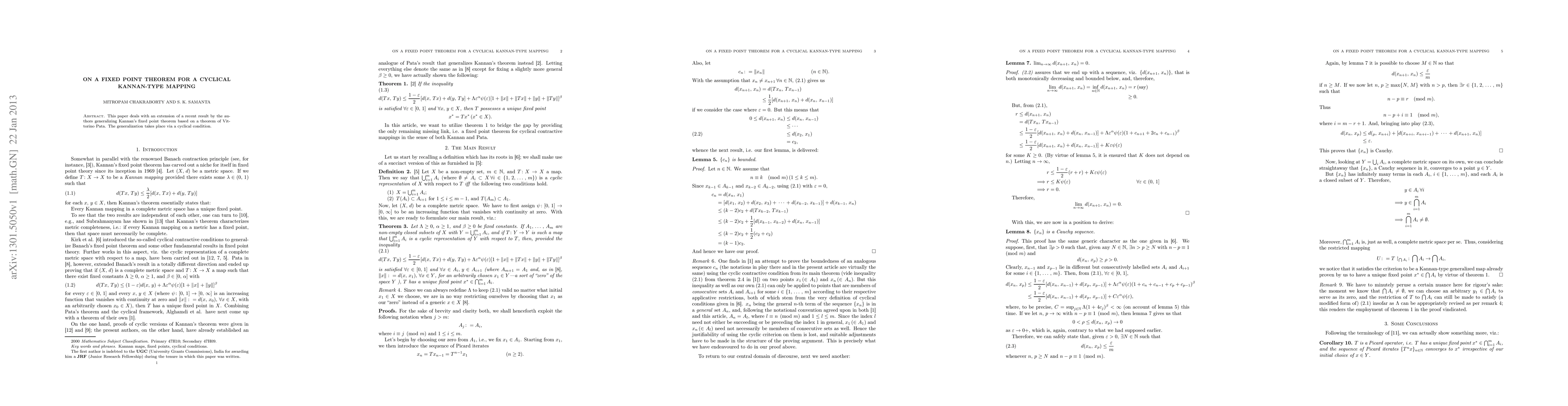 This paper deals with an extension of a recent result by the authors generalizing Kannan's fixed point theorem based on a theorem of Vittorino Pata. The generalization takes place via a cyclical condition.