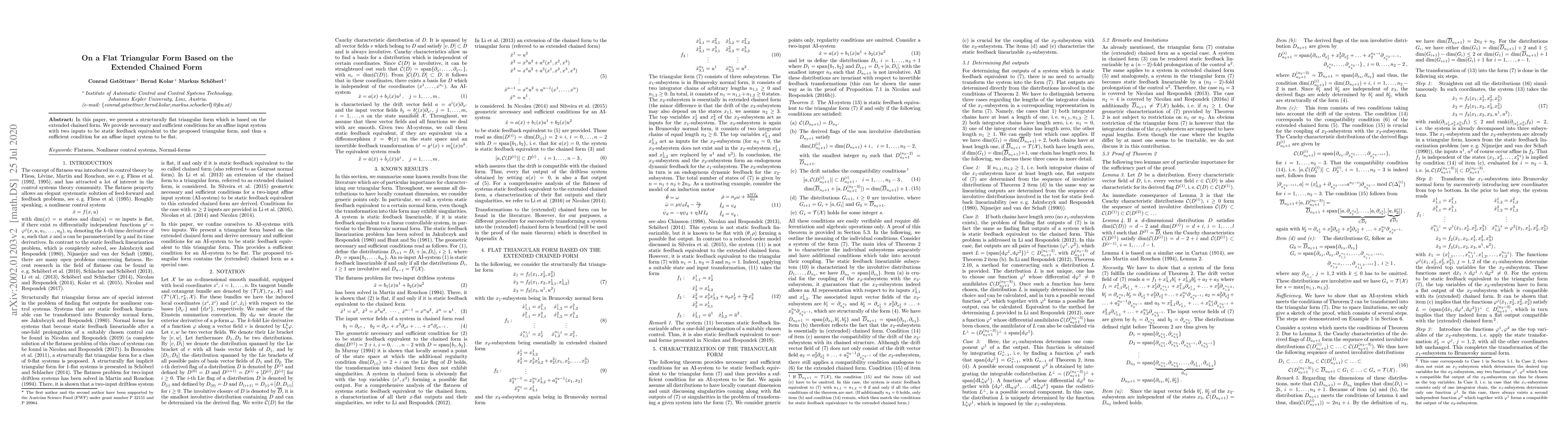 In this paper, we present a structurally flat triangular form which is based on the extended chained form. We provide necessary and sufficient conditions for an affine input system with two inputs to be static feedback equivalent to the proposed triangular form, and thus a sufficient condition for an affine input system to be flat.