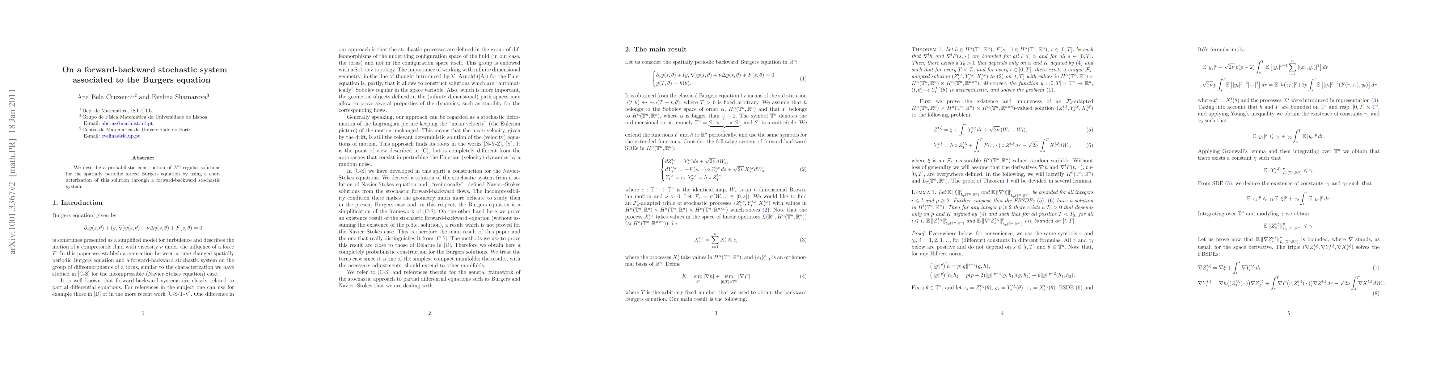Summary: This paper presents a probabilistic method to construct $H^s$-regular solutions for the spatially periodic forced Burgers equation, utilizing a forward-backward stochastic system for characterization. The approach provides a novel framework for understanding the equation's solutions.