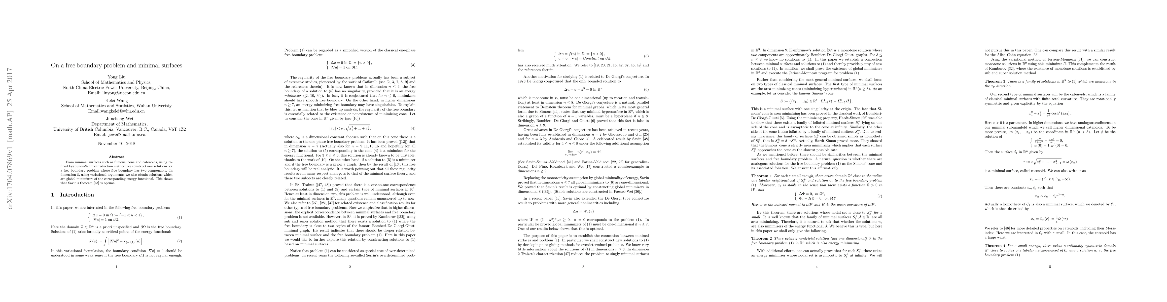 Researchers construct new solutions for a free boundary problem with two components using Lyapunov-Schmidt reduction method, proving Savin's theorem is optimal in dimension 8.