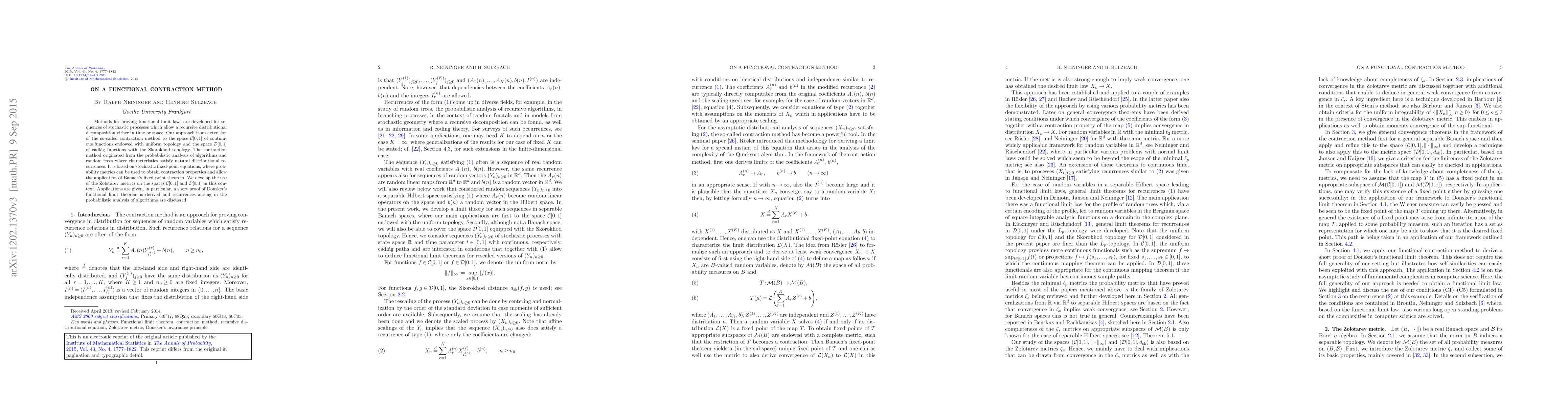 Methods for proving functional limit laws are developed for sequences of stochastic processes which allow a recursive distributional decomposition either in time or space. Our approach is an extension of the so-called contraction method to the space $\mathcal{C}[0,1]$ of continuous functions endowed with uniform topology and the space $\mathcal {D}[0,1]$ of c\`{a}dl\`{a}g functions with the Skorokhod topology. The contraction method originated from the probabilistic analysis of algorithms and random trees where characteristics satisfy natural distributional recurrences. It is based on stochastic fixed-point equations, where probability metrics can be used to obtain contraction properties and allow the application of Banach's fixed-point theorem. We develop the use of the Zolotarev metrics on the spaces $\mathcal{C}[0,1]$ and $\mathcal{D}[0,1]$ in this context. Applications are given, in particular, a short proof of Donsker's functional limit theorem is derived and recurrences arising in the probabilistic analysis of algorithms are discussed.