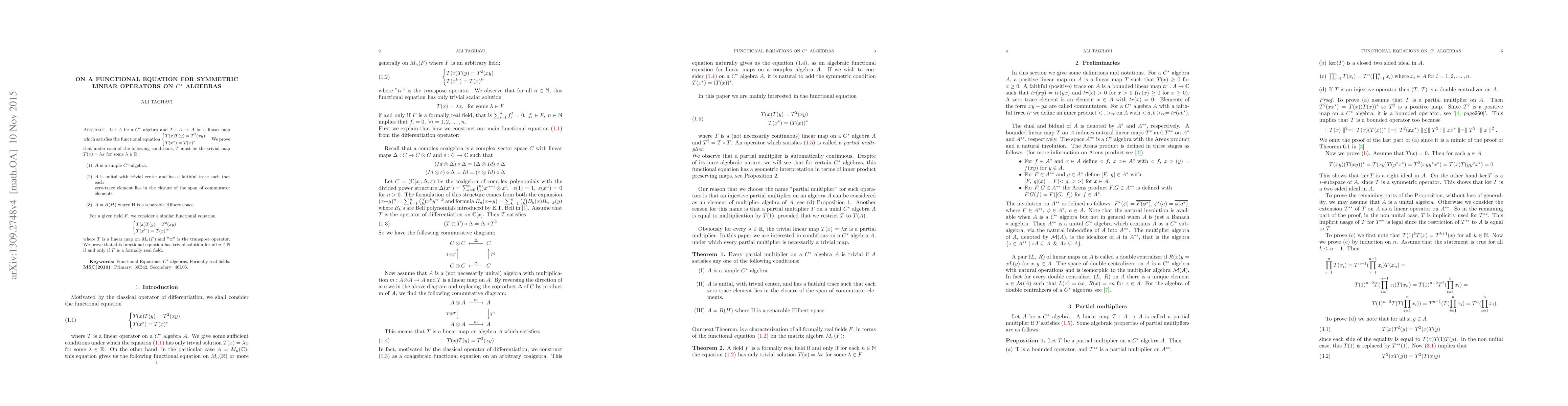 This paper proves that a specific functional equation for linear maps on C* algebras and matrices over any field F results in the trivial map under certain conditions on the algebra or field. The conditions include simplicity, a unital C* algebra with a faithful trace, or the algebra of bounded operators on a separable Hilbert space. The paper also establishes that the trivial solution is the only one for matrices over F if and only if F is a formally real field.